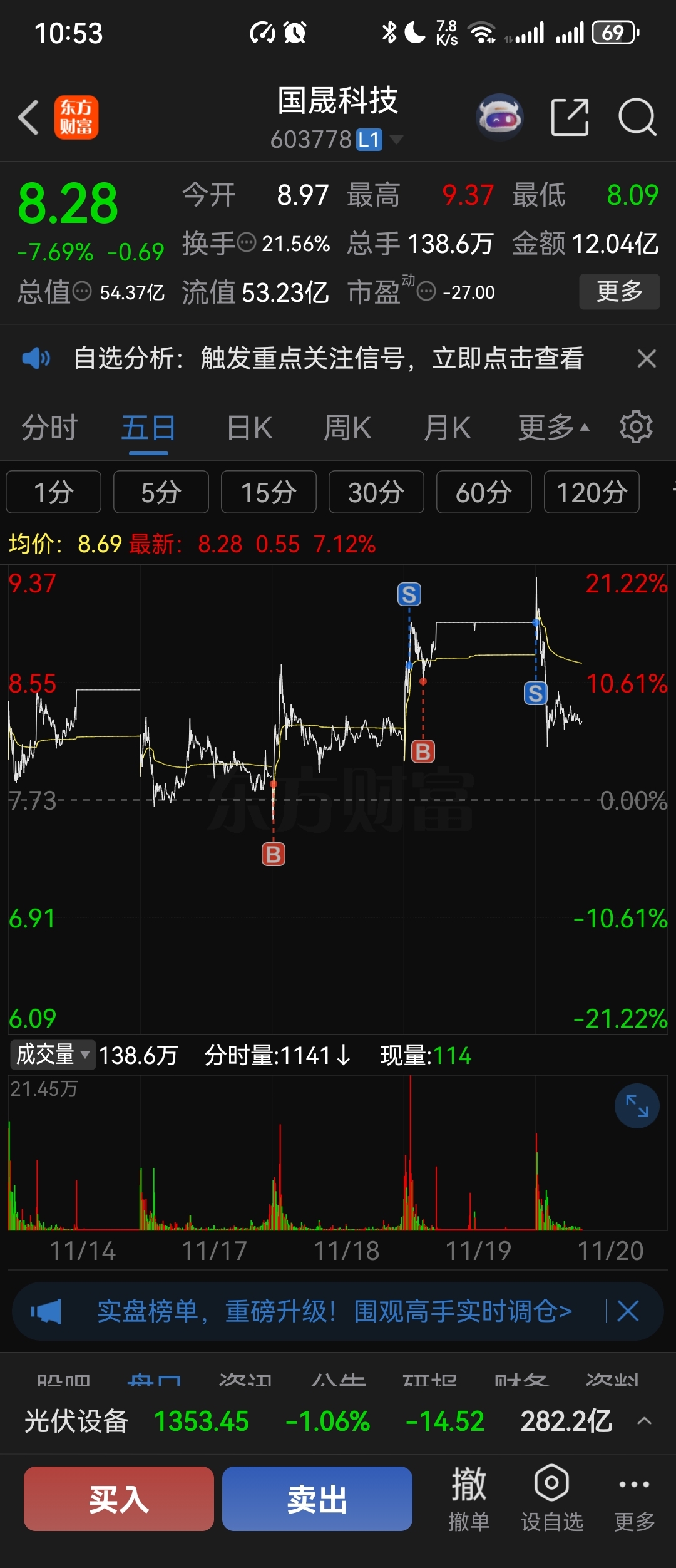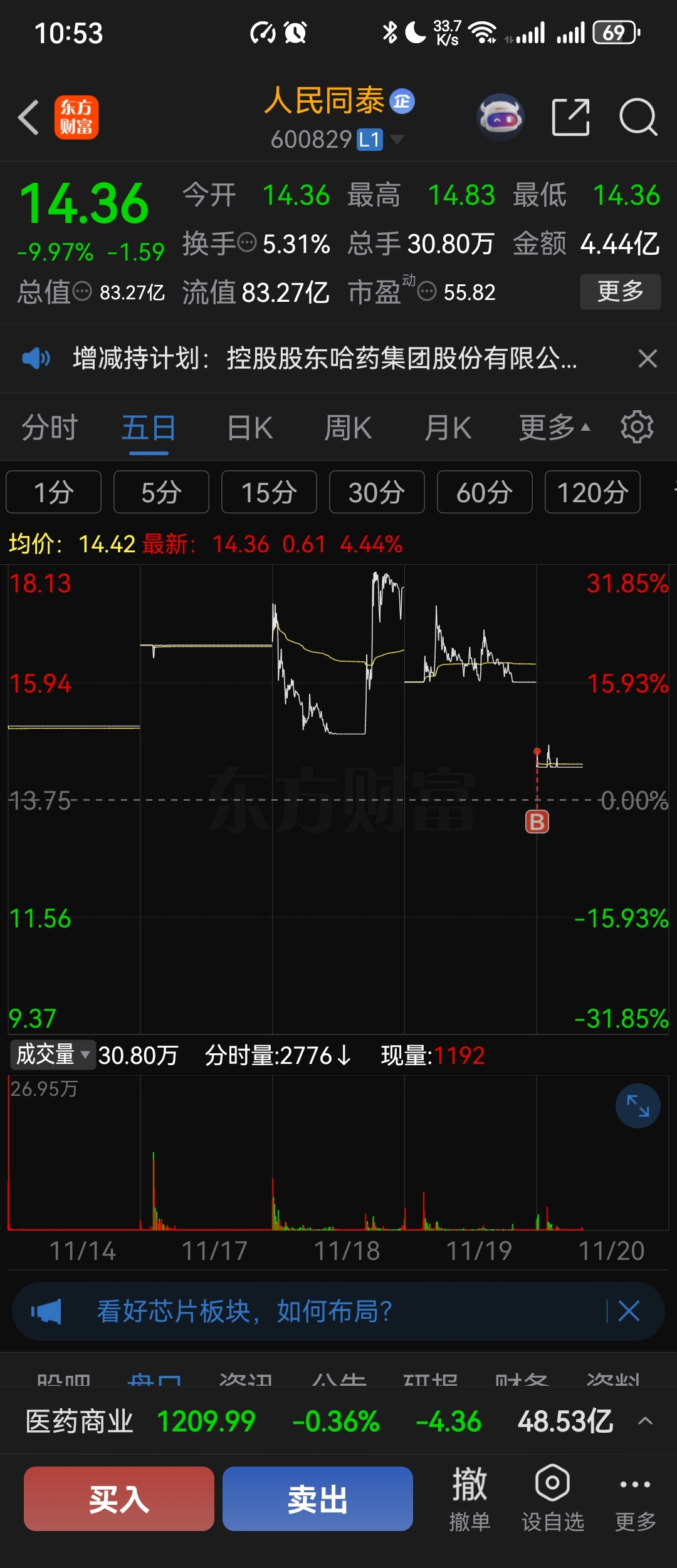 早上就走了。这个行情不好玩,换了一只