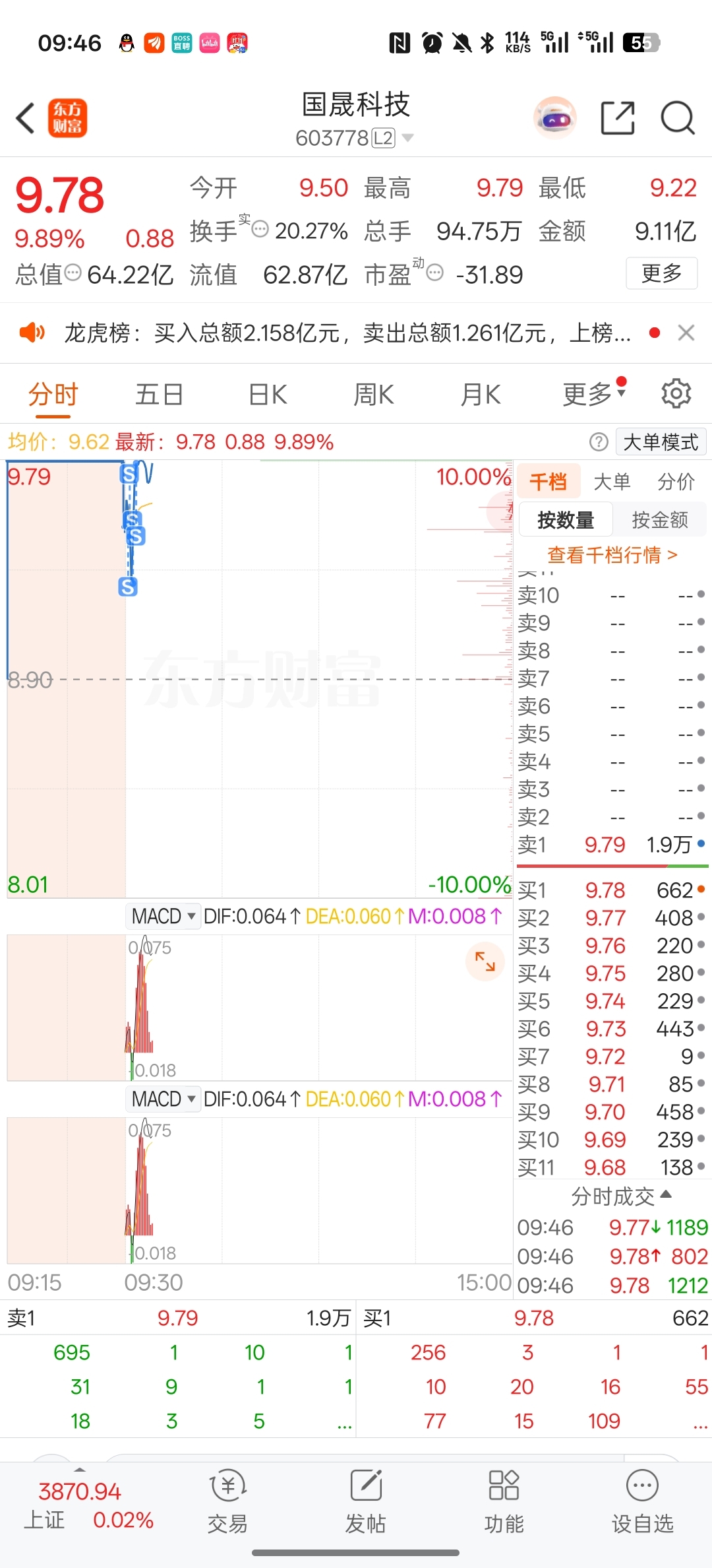 $国晟科技(SH603778)$ 还以为千万封单 结果骗人接盘,今天封住了明天也不会高开