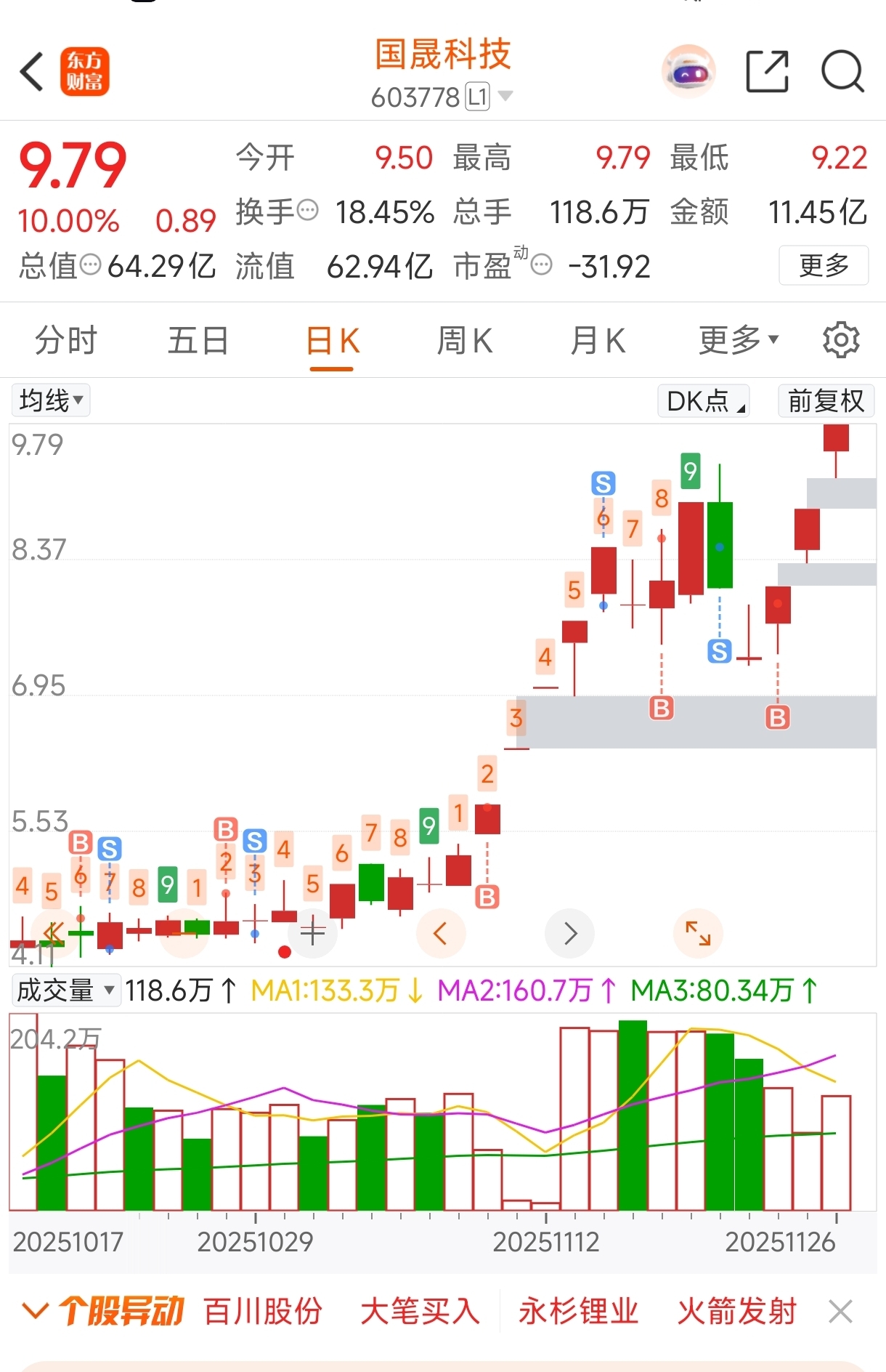 $国晟科技(SH603778)$ 三板斧过头有三必有五,继续加油鸭