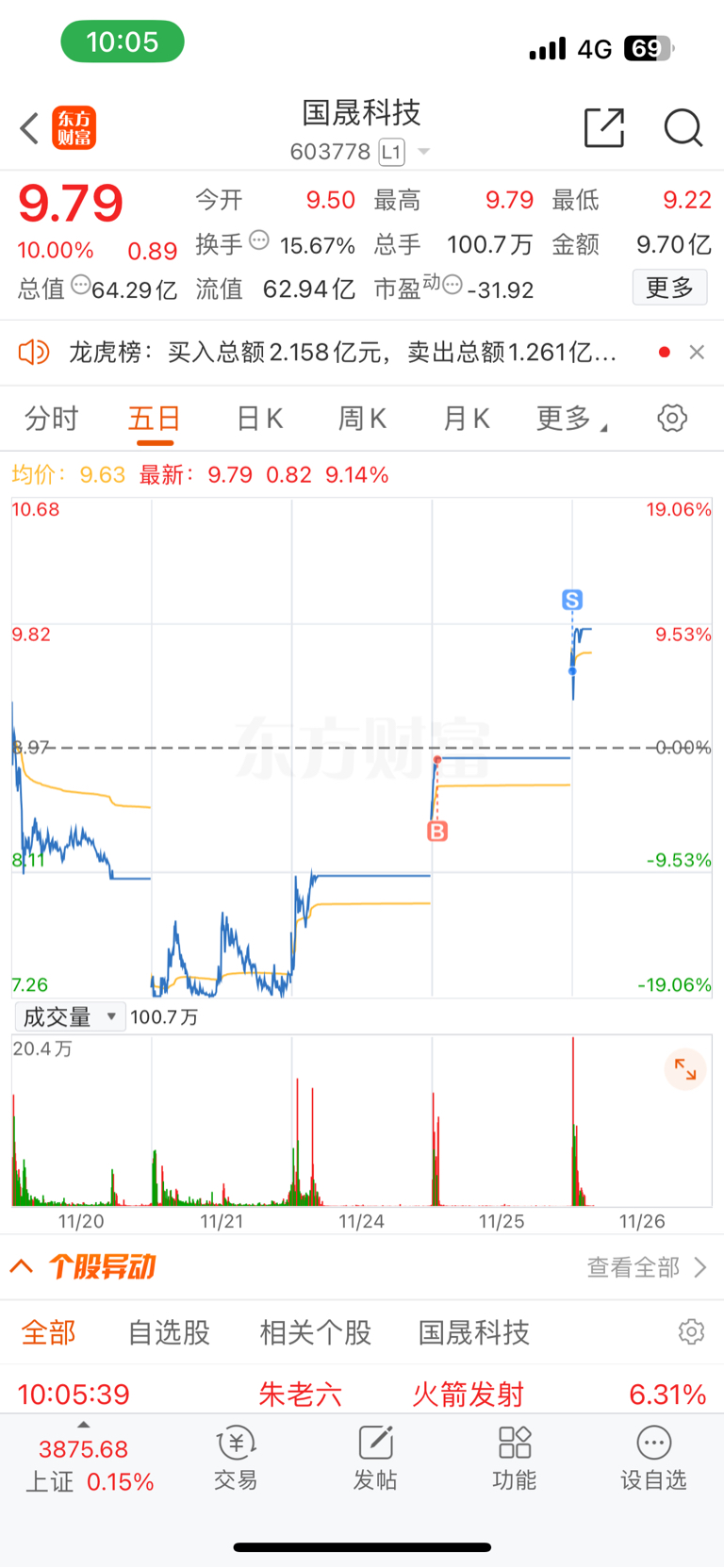 $国晟科技(SH603778)$ 利好老炸,没有接回的想法