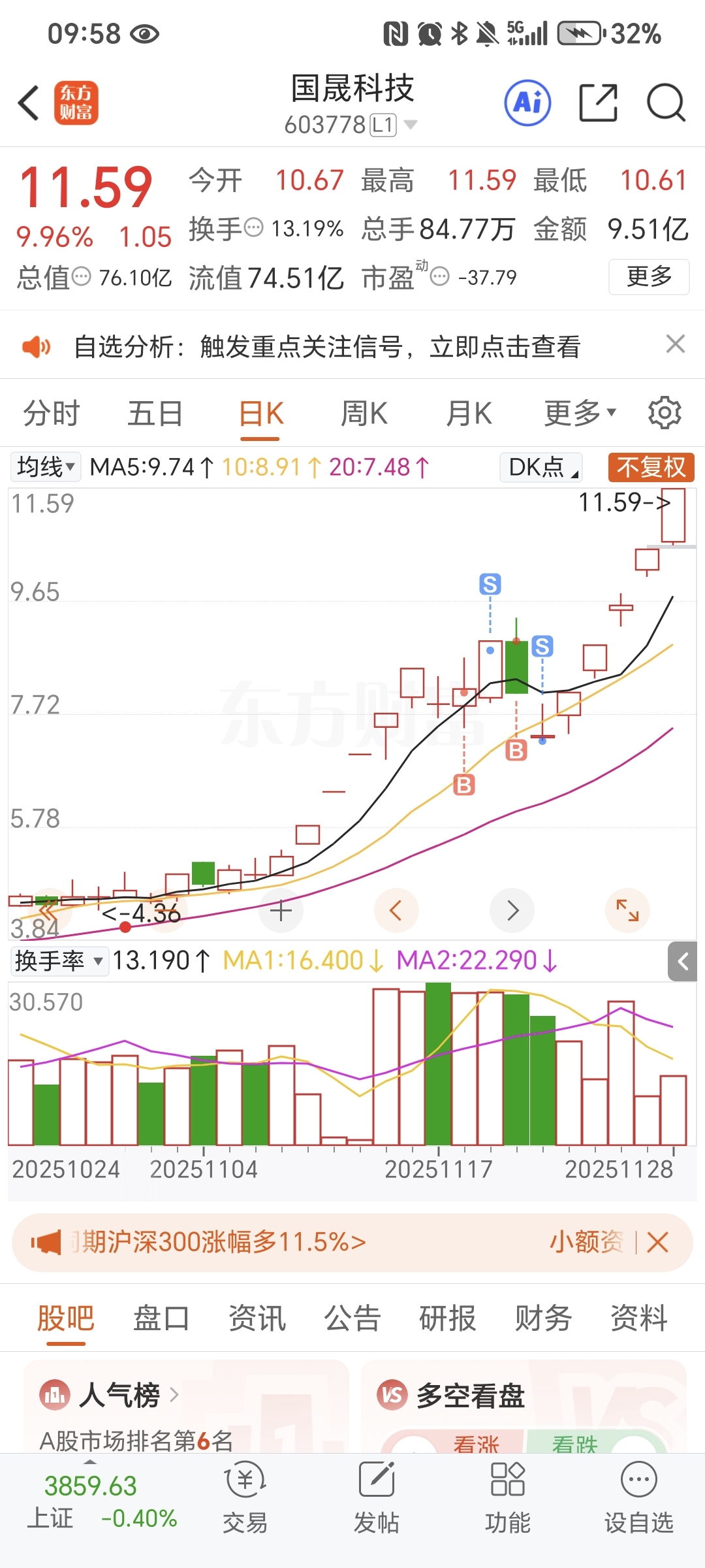 $国晟科技(SH603778)$ 卖飞5个板,靠了