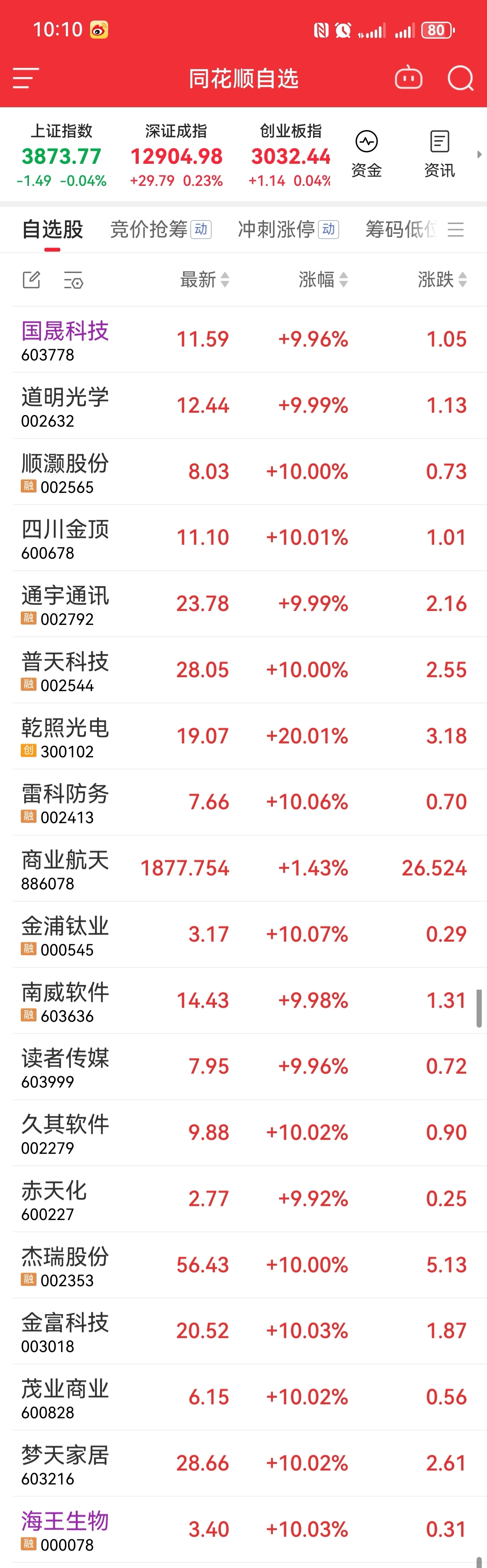 $国晟科技(SH603778)$ 11月28日9点28分:1.单点3天国晟科技,开盘+1低吸做T小肉。2.单点2天的金富科技(茂业商业)盯板开板止盈。3.商业航天:顺灏股份,通宇通讯,四川金顶(乾照)。收工。