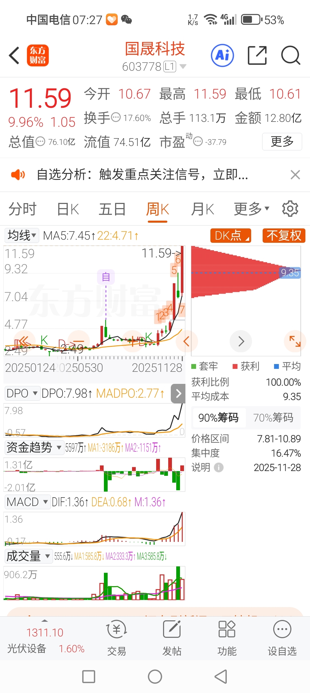 $国晟科技(SH603778)$ 上周上涨57.69%
