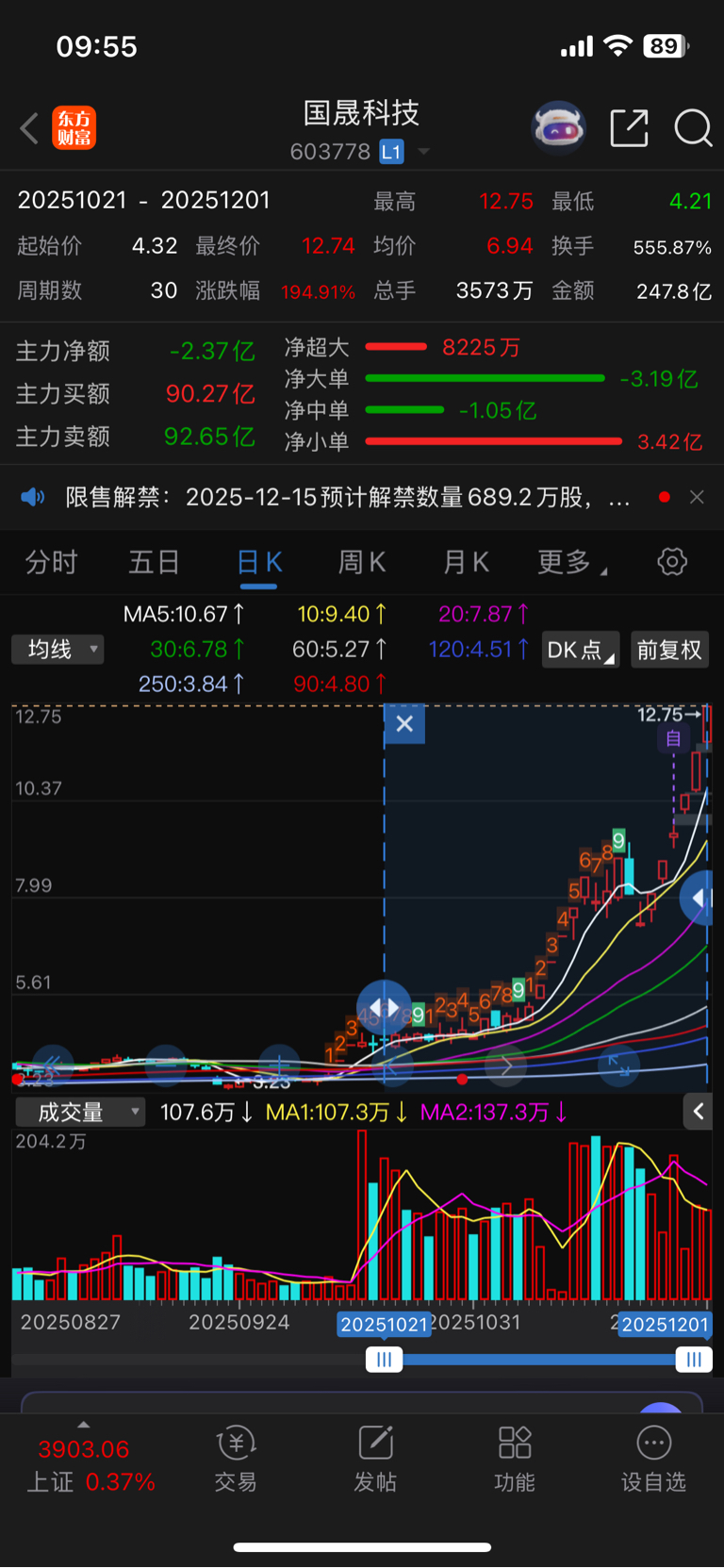 $国晟科技(SH603778)$ 三十天两百异动快到了,先出来避个锋芒,如果卖飞,祝里面的兄弟吃肉