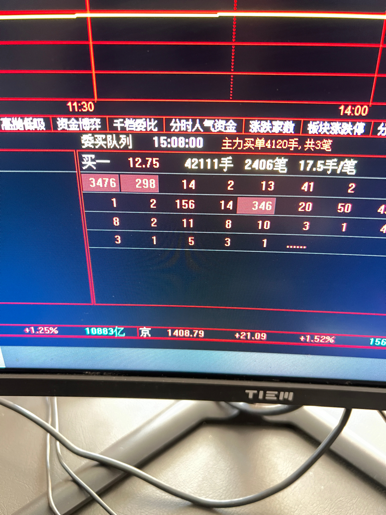 卖盘几乎没有了,一个万手大单,从2:12一直到收盘,才成交6524手,直接顶到结