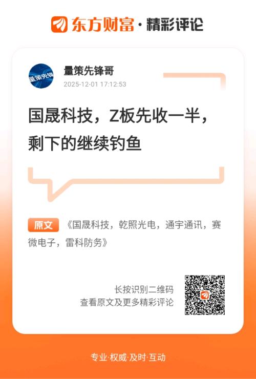 雷科防务 $雷科防务(SZ002413)$,这跟通宇通讯一样,开盘直接一字张停,没上车机会。它的硬核逻辑太多了,子公司助力神舟二十一号对接,参与海洋卫星地面接收系统建设,有毫米波雷达、相控阵雷达技术,还和华为、比亚迪有合作,北斗导航应用在自动驾驶,技术实力没话说。上周四调整后周五反包,筹码换手良性,本来就看好它冲高,可惜没赶上,只能围观,下次有机会再下手。一字张停抢不到,只能围观。只怪我前2天没定力,被洗了出去。