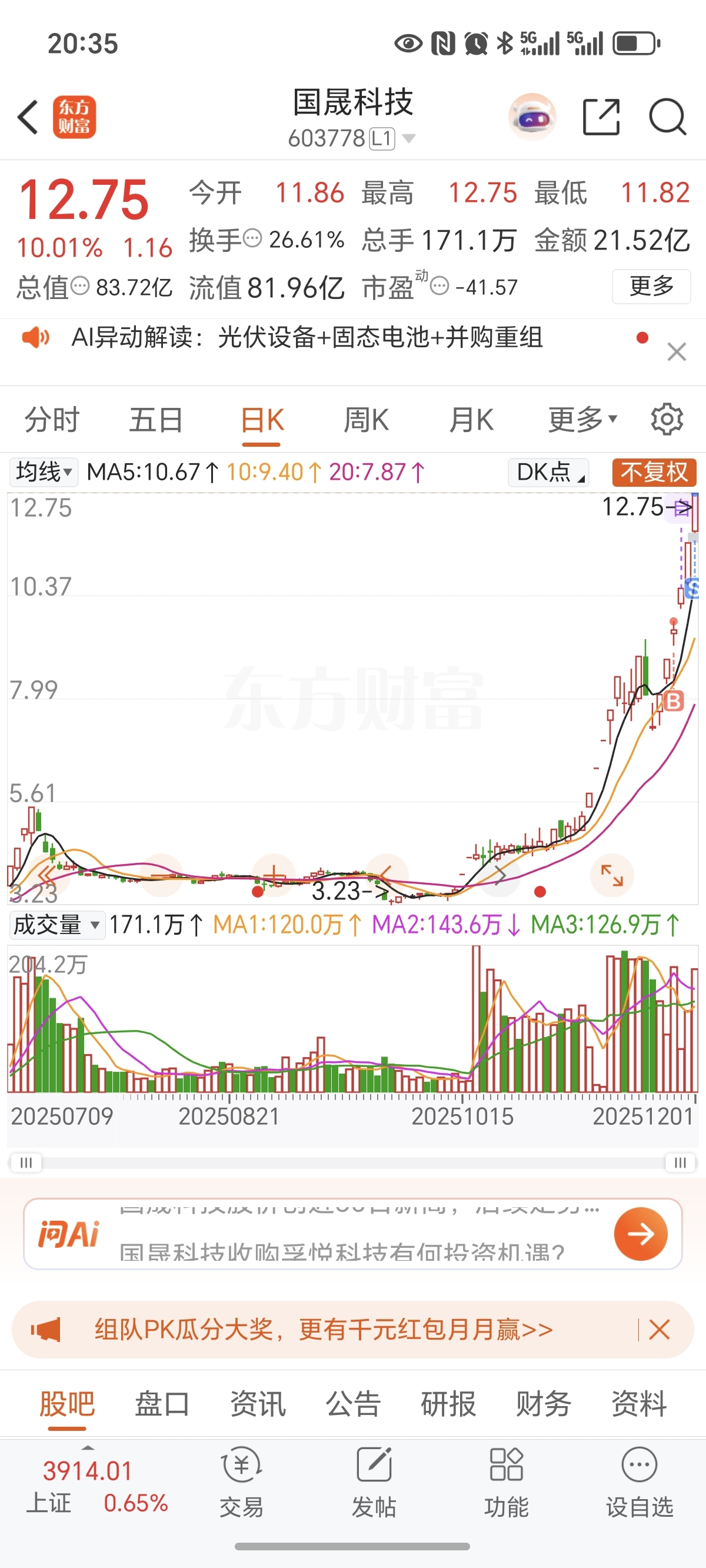 $国晟科技(SH603778)$ 我走了我拿不住了,留下的发财