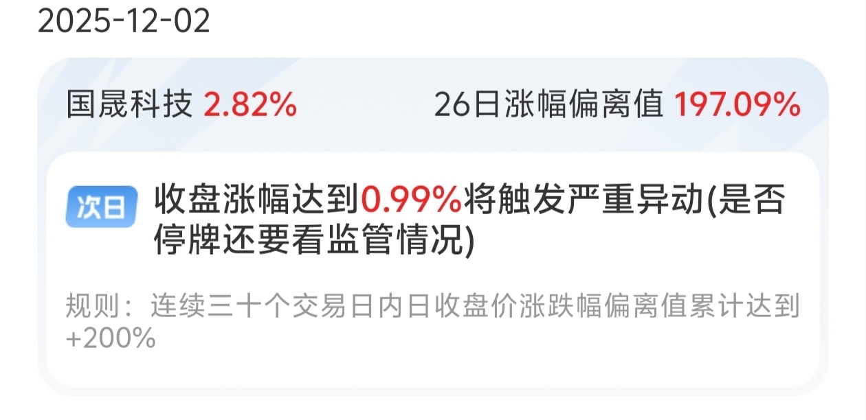 $国晟科技(SH603778)$ 这样卡异动不得卡个十个交易日,要不然就得回调了吧