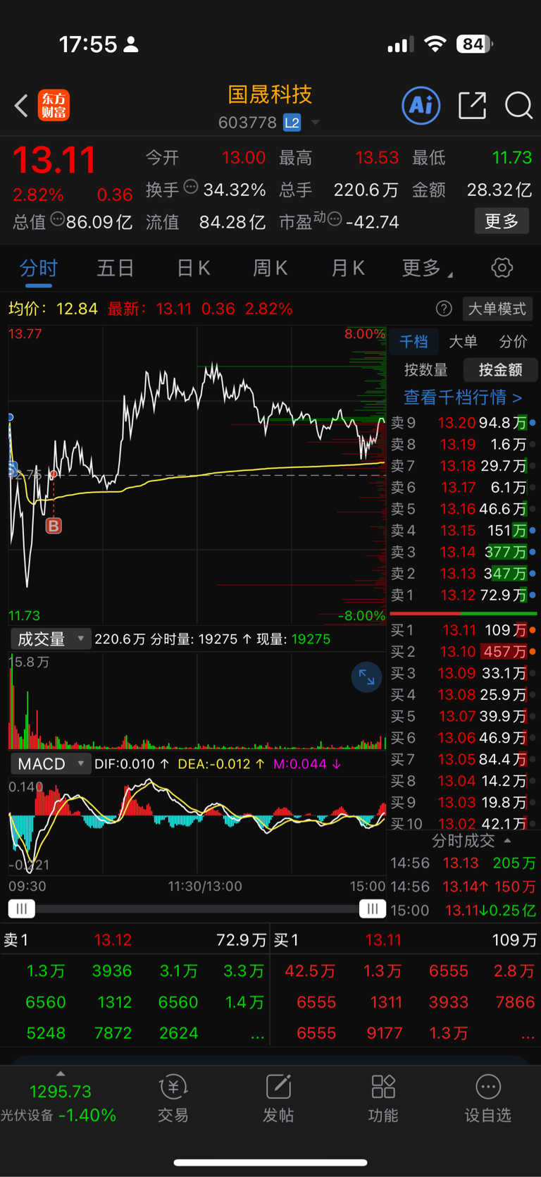 $国晟科技(SH603778)$ t一下,明天不会闷了我吧