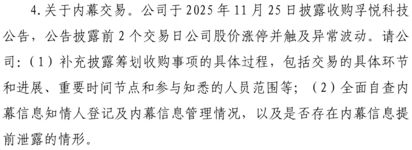 监管第二问要求公司披露从首次接触到谈判、再到协议签署的完整时间轴,并提供各阶段内幕信息知情人名单,同时自查是否存在信息提前外泄的情形。