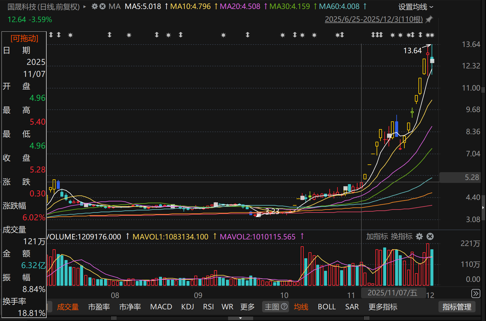 国晟科技11月7日以来股价走势(来源:Choice数据)
