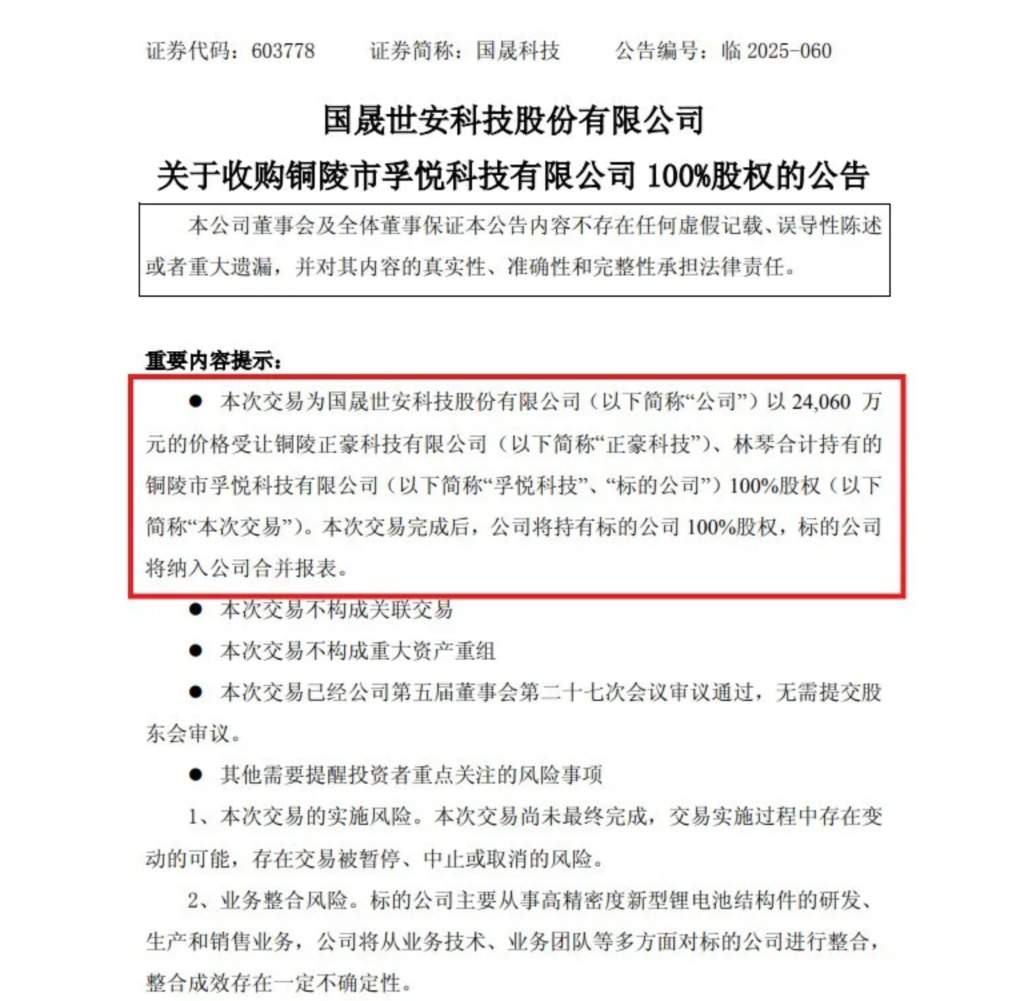 国晟科技原本主营光伏业务,此次却以全现金方式跨界收购一家成立仅16个月、此前主营电容器外壳的孚悦科技。截至2025年9月末,公司账面货币资金仅2.73亿元,需一次性支付2.41亿元收购款,其中约八成依赖并购贷款。