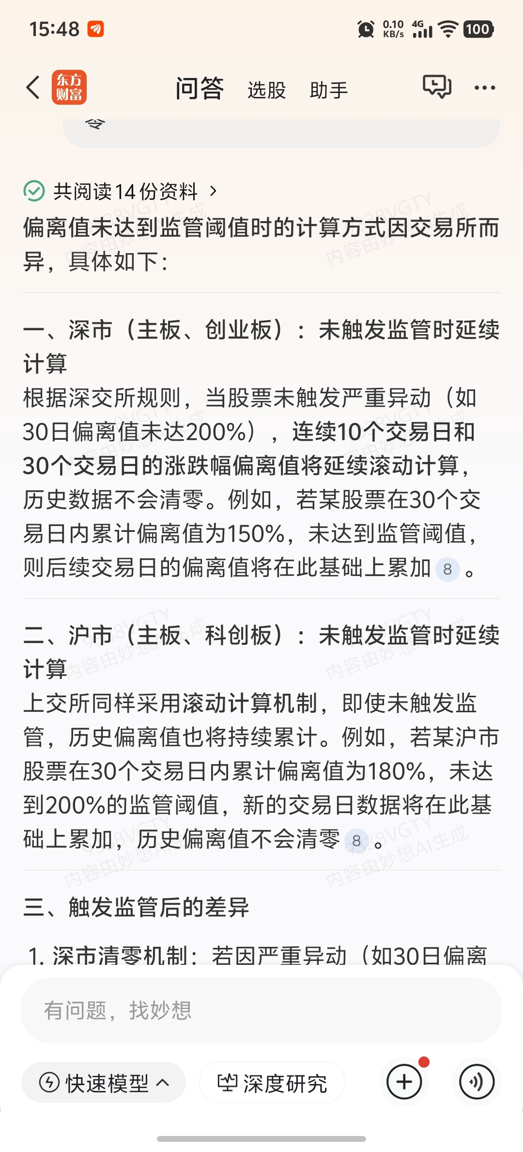 滚动计算偏离值的,只有触发严重异动了进监管出来后才会清零,不然一直滚动