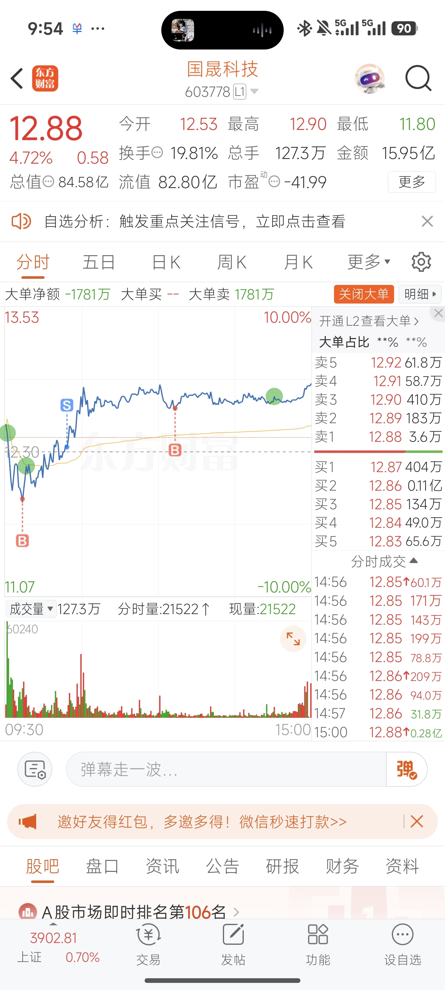 温馨提示: 1.根据《证券法》规定,禁止编造、传播虚假信息或者误导性信息,扰乱证券市场;2.用户在本社区发表的所有资料、言论等仅代表个人观点,与本网站立场无关,不对您构成任何投资建议。用户应基于自己的独立判断,自行决定证券投资并承担相应风险。《东方财富社区管理规定》
