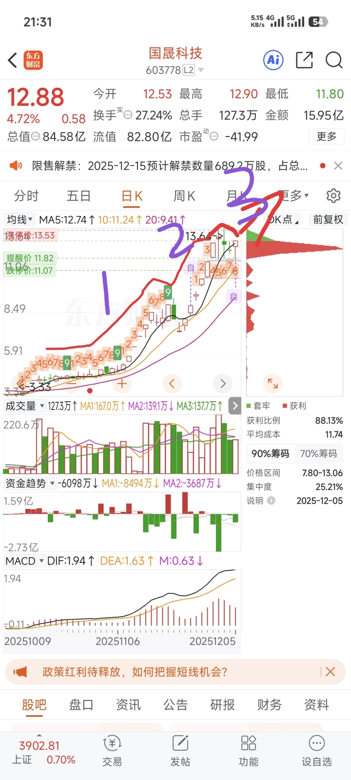 $国晟科技(SH603778)$ 预测一下