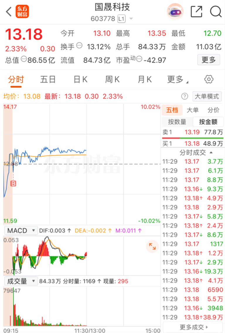 $国晟科技(SH603778)$ 老粉都知道哈,上个星期吃了一波,今天看趋势不错呀,果断接回试试,
