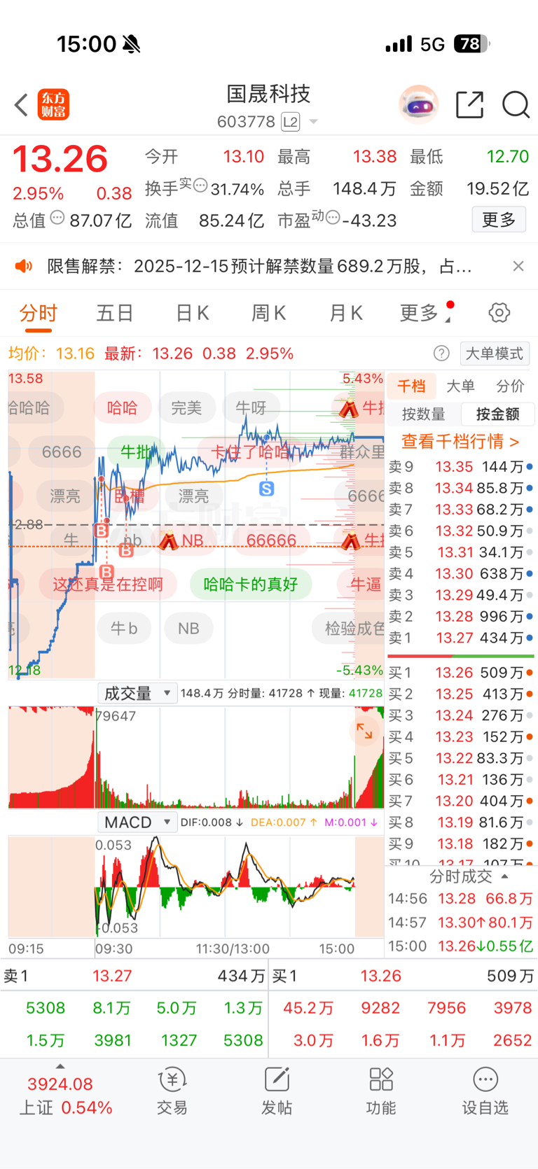 温馨提示: 1.根据《证券法》规定,禁止编造、传播虚假信息或者误导性信息,扰乱证券市场;2.用户在本社区发表的所有资料、言论等仅代表个人观点,与本网站立场无关,不对您构成任何投资建议。用户应基于自己的独立判断,自行决定证券投资并承担相应风险。《东方财富社区管理规定》