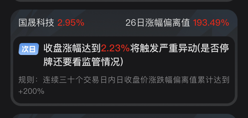 首先这个票没有监管。只是都在认为主力在卡异动,沪市30交易日不能超200,滚动计算,这周很多截图为什么会显示26、27、28、29日内,因为往前推30个交易日10月27号是股价最低点,实在不懂app里面直接有答案。