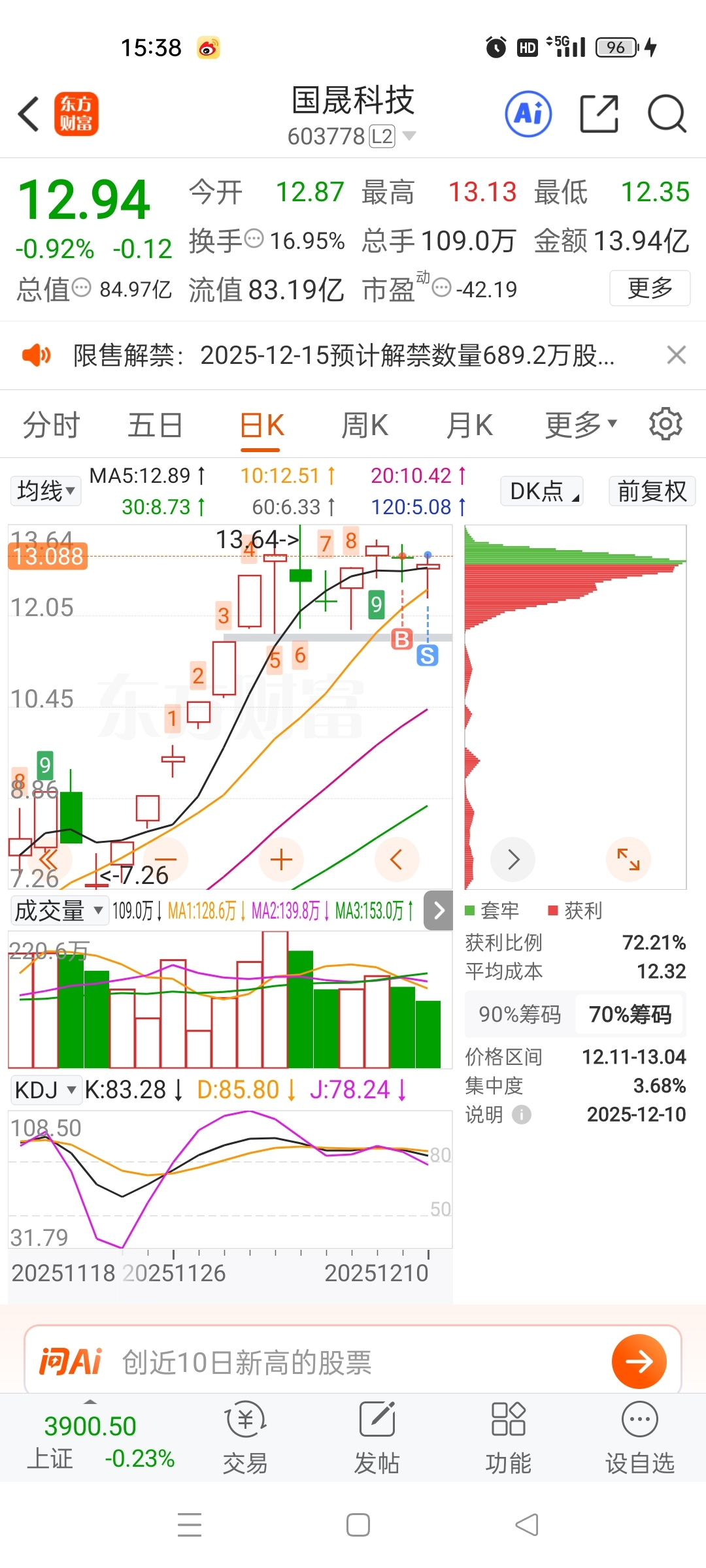$国晟科技(SH603778)$ 保本出了,太可怕了,恐高啊