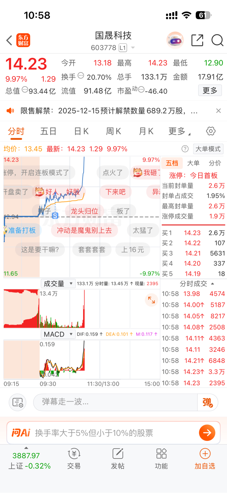 $国晟科技(SH603778)$ 不卡异动了吗