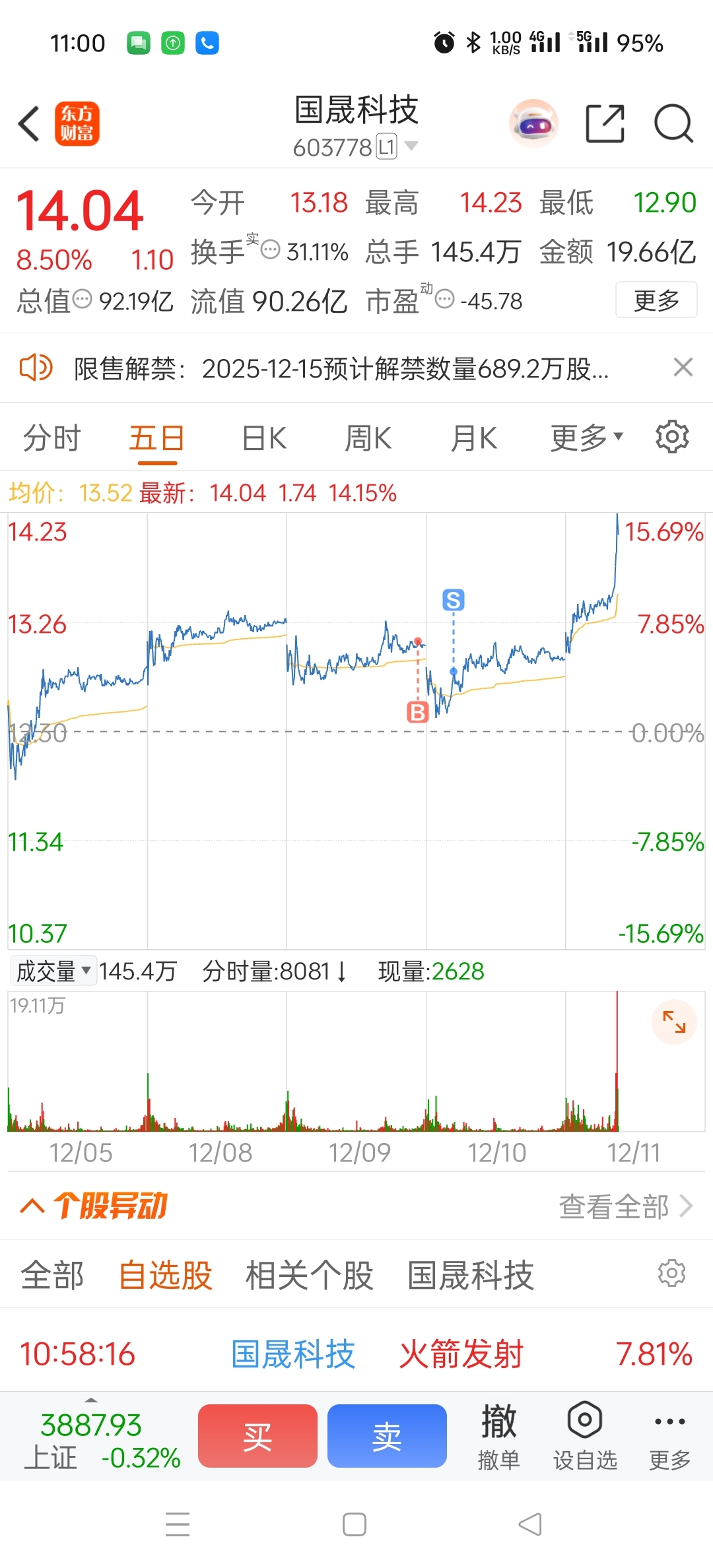 $国晟科技(SH603778)$ 什么意思?你就缺我这一天?