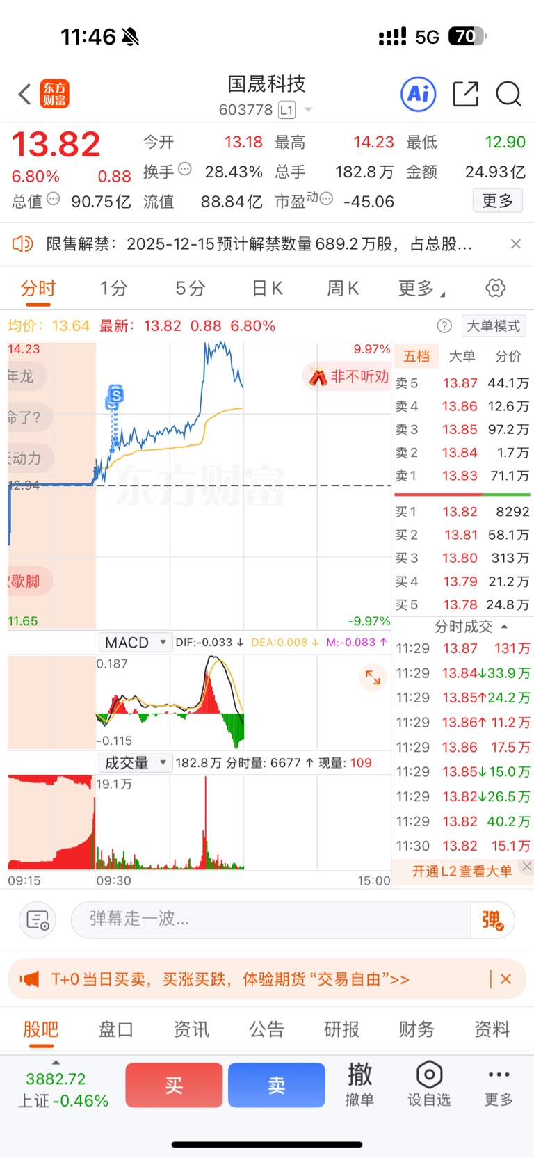 $国晟科技(SH603778)$ 我容易么,我!!!