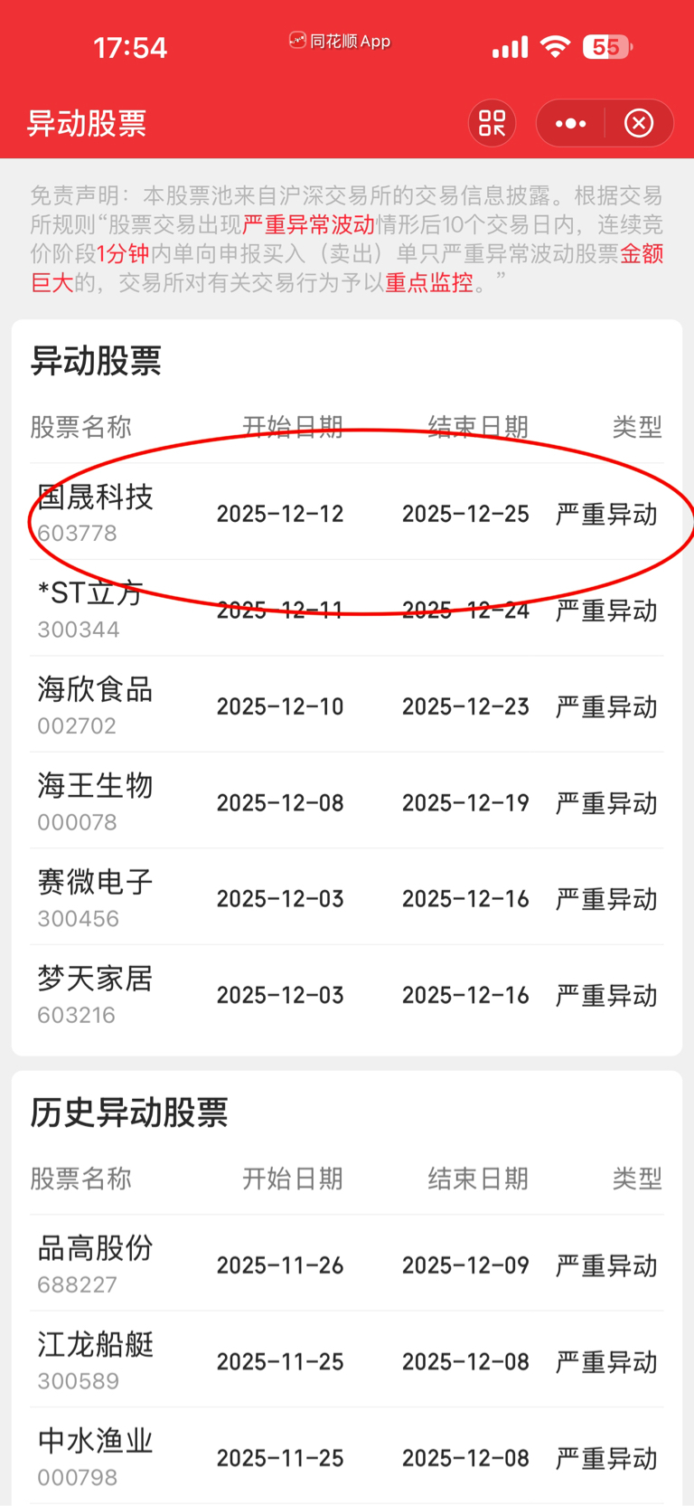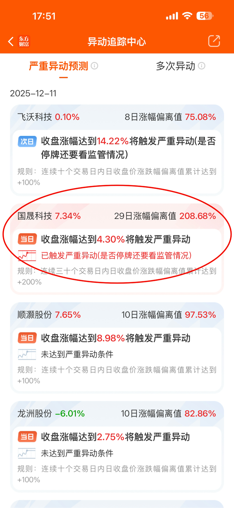 $国晟科技(SH603778)$ 首先打开炒股软件,右上角放大镜输入“异动”就会出来东财是“异动追踪中心”,同花顺是“异动股票”打开就可以看到异动的股票名单。