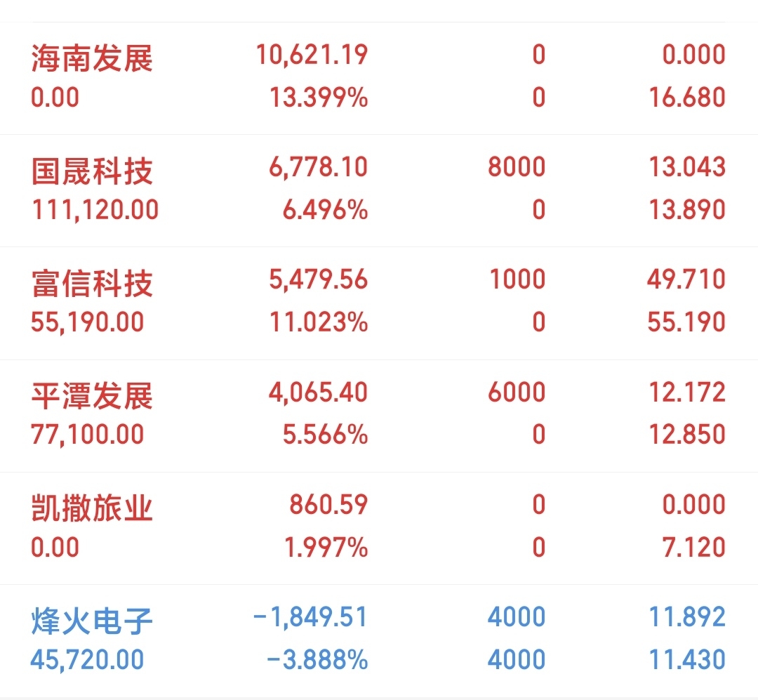 12.11日持仓:海南发展,凯撒旅业,烽火电子今日动态:海南发展,凯撒旅业,盈利