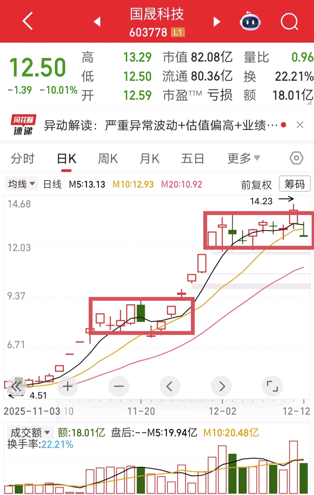 $国晟科技(SH603778)$ 横而不跌,箱体震荡。都在传异动卡完了要拉。偏偏昨天要主动冲异动,然后今天来一个跌停。昨天通过触顶不封诱多,今天通过触底不封诱空。拉涨和跌停,都是主力洗盘吸筹的手段。整体横而不跌,趋势不破,拿好。