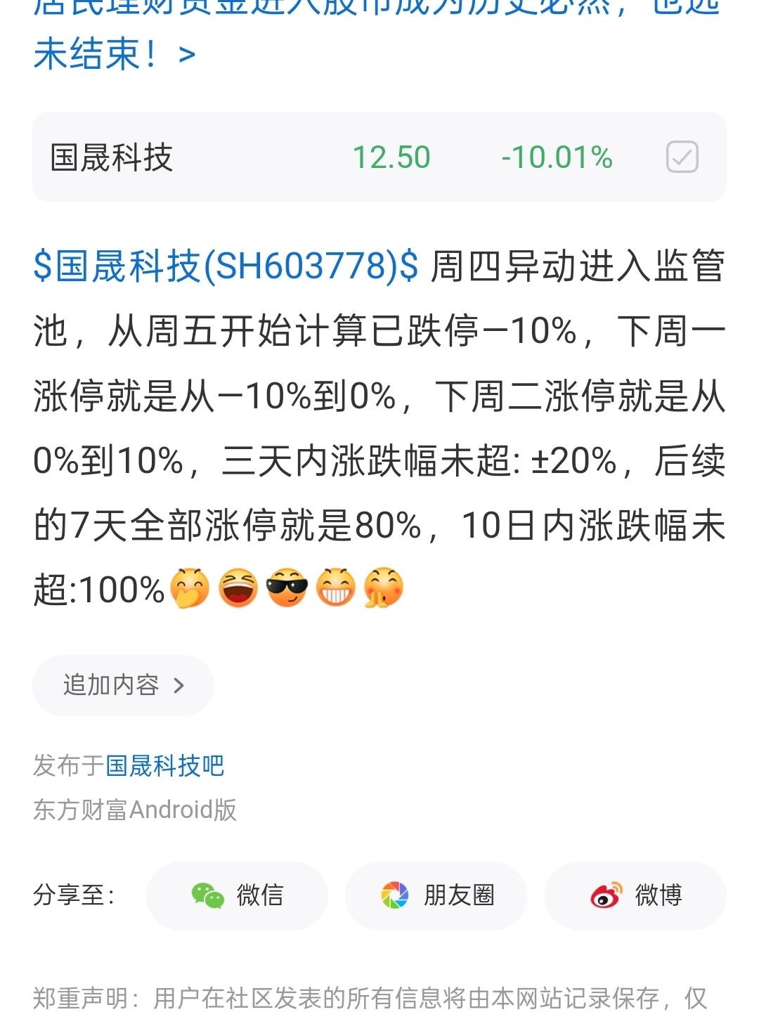 温馨提示: 1.根据《证券法》规定,禁止编造、传播虚假信息或者误导性信息,扰乱证券市场;2.用户在本社区发表的所有资料、言论等仅代表个人观点,与本网站立场无关,不对您构成任何投资建议。用户应基于自己的独立判断,自行决定证券投资并承担相应风险。《东方财富社区管理规定》