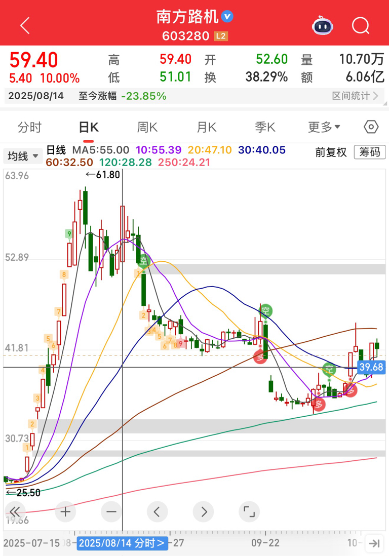 这是南方路机8.14号拉涨停进监管后的走势,因为鑫多多前面出货出麻了根本没有筹码