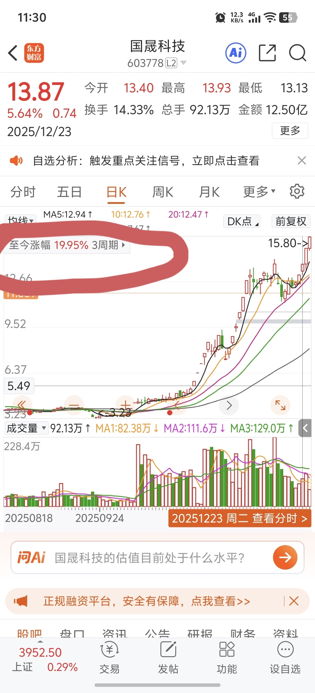 $国晟科技(SH603778)$ 再拉一分钱就延长监管了。