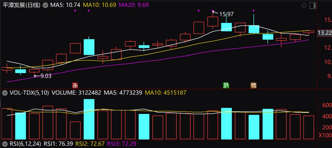 平潭发展福建省及平潭当地近期也集中发布了支持海洋经济、新质生产力发展的政策,平潭发展是核心收益标的,基本面较弱,三季度营收同比下降,毛盈利能力比较差,基本面上,已经虽然连续三日缩量上涨,呈现量价背离,但是盘面上在20日线是有明显支撑的,今日如果是高开大概率是回落的,但如果是低开放量继续回踩5日线或者20日线可以尝试低吸。此外如果平潭没有机会也可以靠隔壁合富。