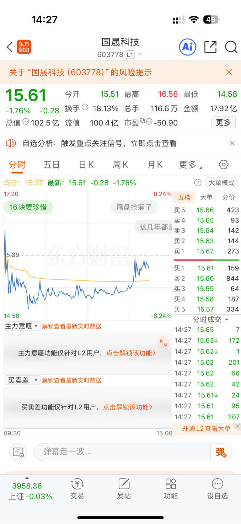 $国晟科技(SH603778)$ 今天之后不会再有15的筹码了