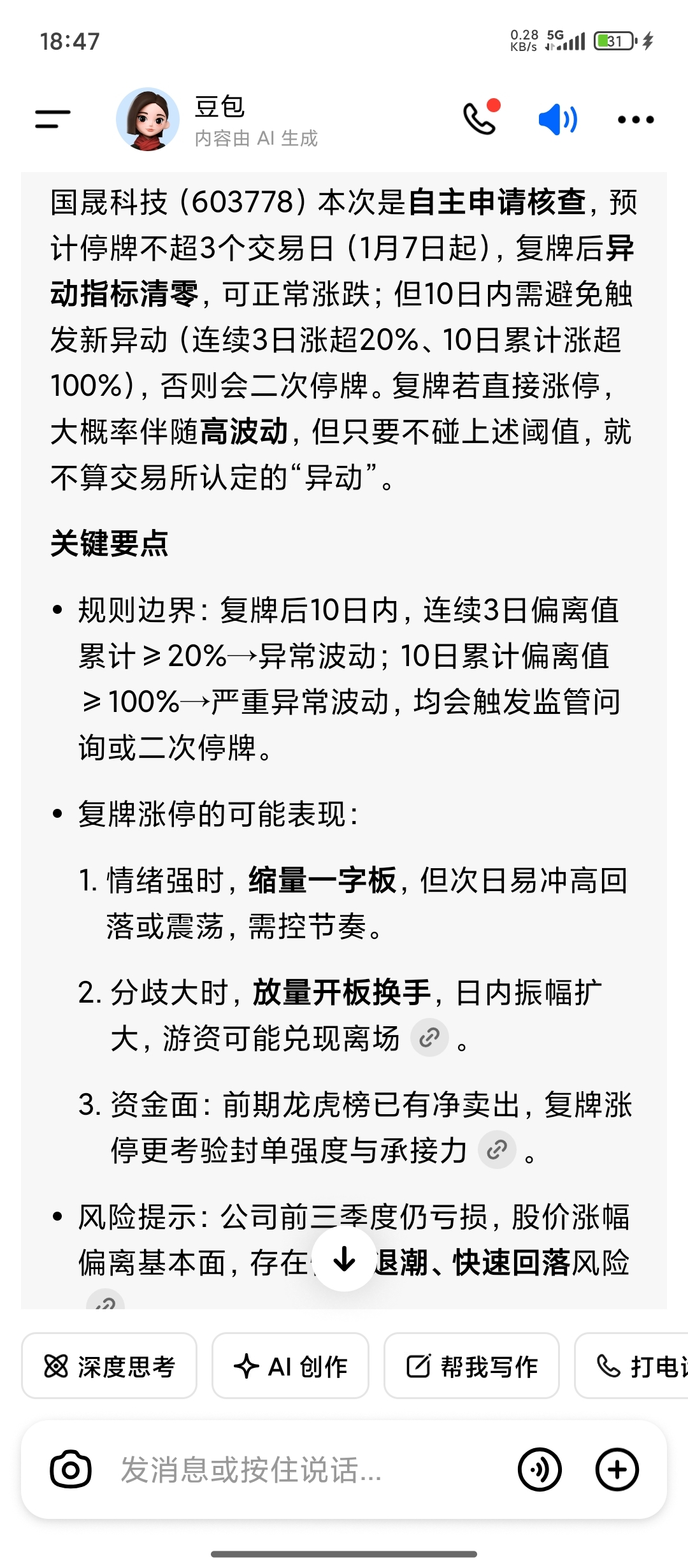$国晟科技(SH603778)$ 今晚出公告了!公告内容没有任何问题!说明公司的所有操作都是合理合规的,这是最大的利好!公司又预告了25年业绩为负,这个所有人都知道,早就有这个预期了,再说大家也不是炒作你的业绩!大家看中你的太空光伏和固态电池,太阳翼已经在太空卫星上运行了!至于刚发布的光伏退税主要针对其他光伏公司是利空,对于你反而是利好,你的大客户主要是国内央企!下周一开始异动清零了!