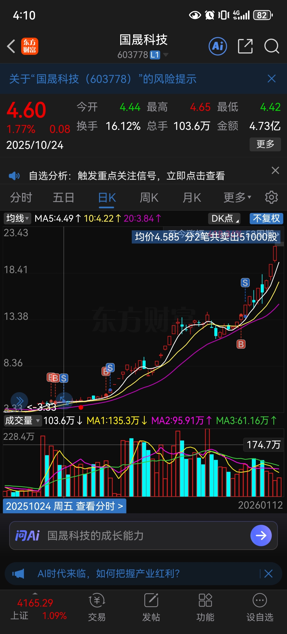 $国晟科技(SH603778)$ 谁懂这感受??底部买的5万股,没拿住