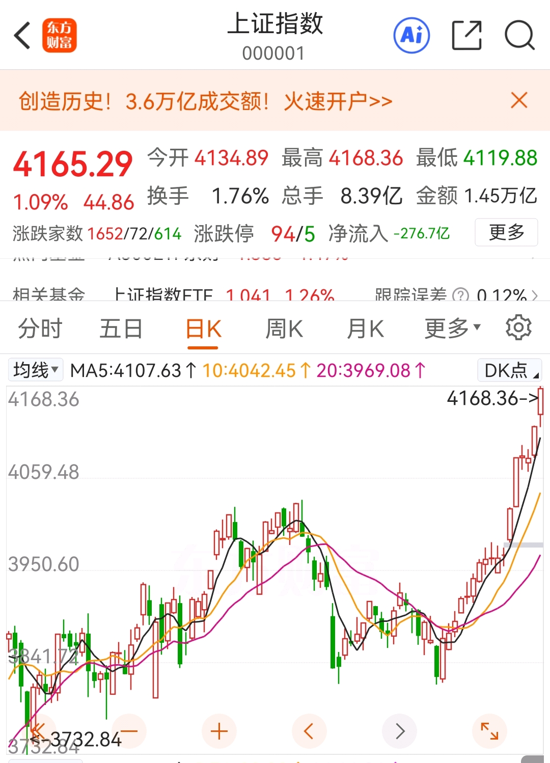 最终,沪深京三市成交额达到了惊人的36450亿,较上一交易日整整增加了5000亿,5000亿啊,股市从来不缺钱,至此创下A股历史最大成交量。