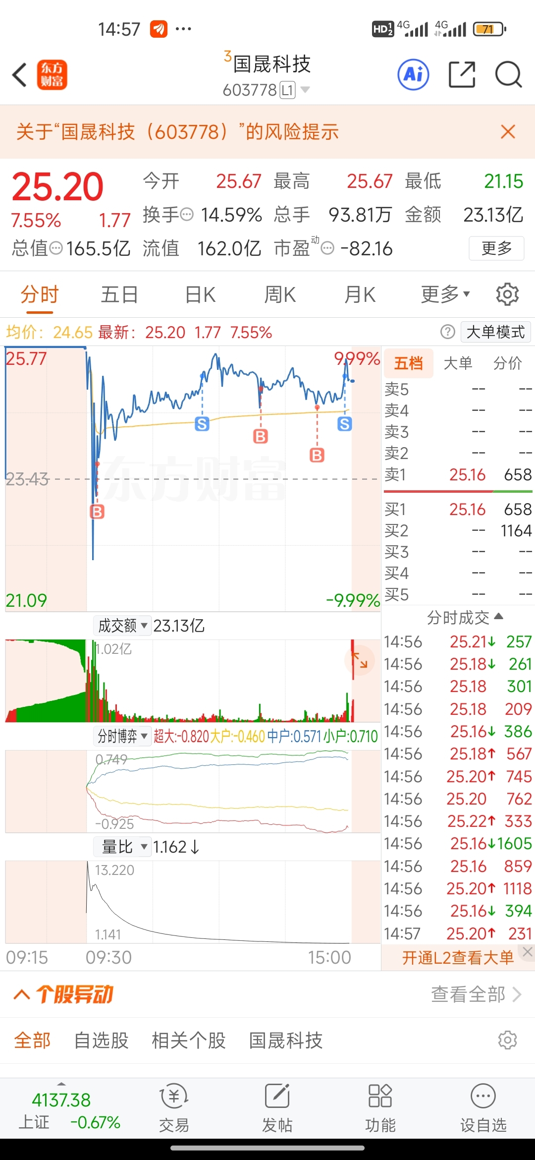 $国晟科技(SH603778)$ 老大走趋势,我做T,23接了,25.3卖了,24.7接了,25.25卖了