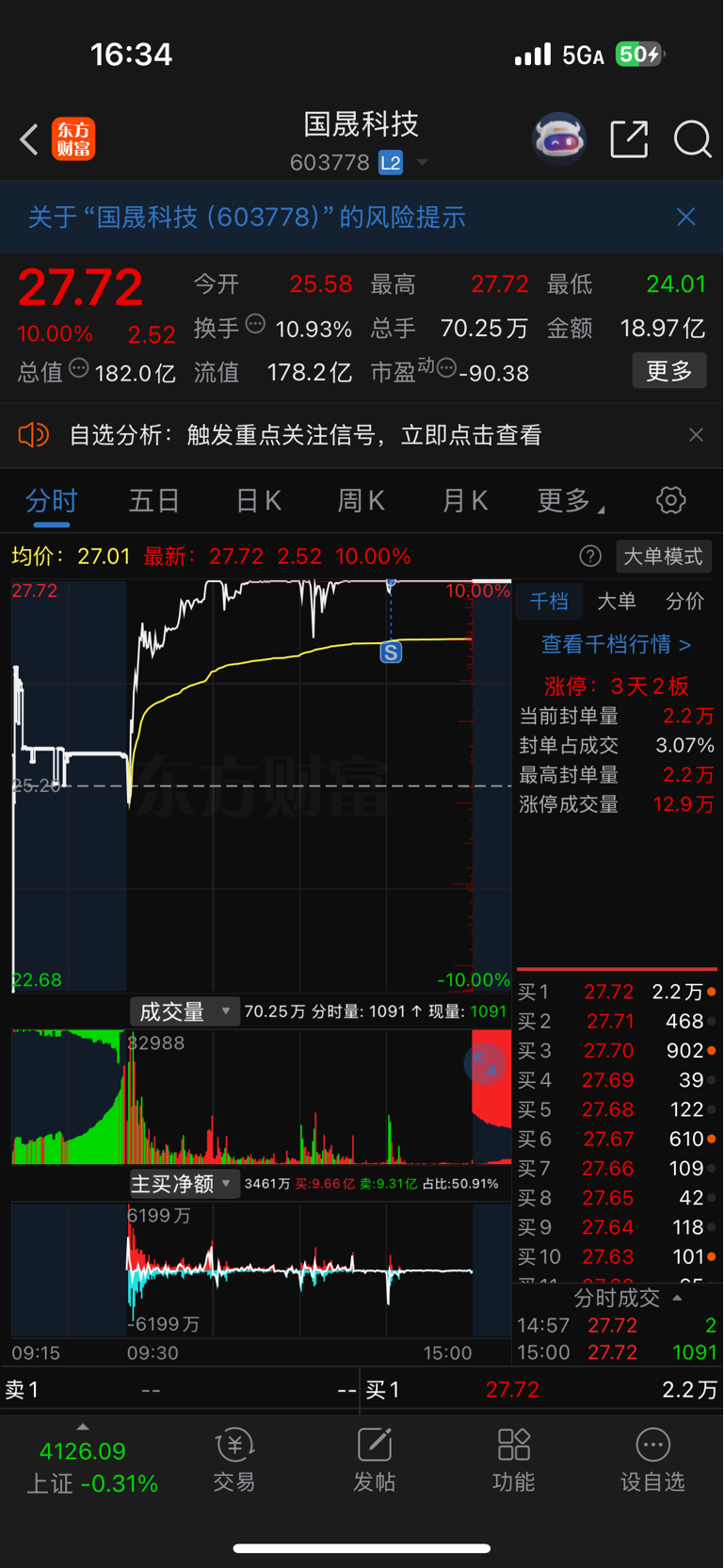 $国晟科技(SH603778)$ 落袋为安