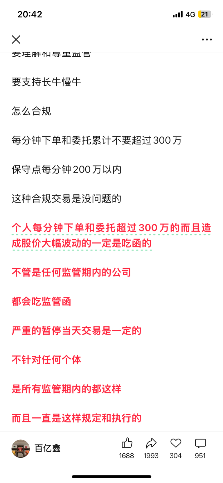 今天上板的时候有一笔5000手超1000w的单子,监管期可以理解限制个别行为,监