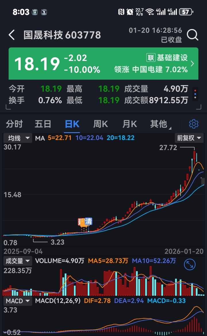 $国晟科技(SH603778)$ 心里终于好受一些了