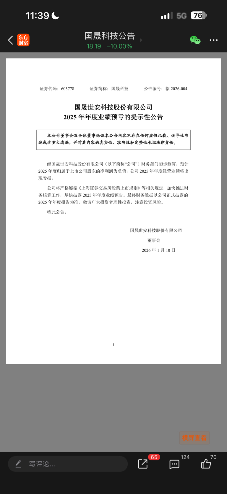 $国晟科技(SH603778)$ 业绩亏损不是1.10号就出来了吗?