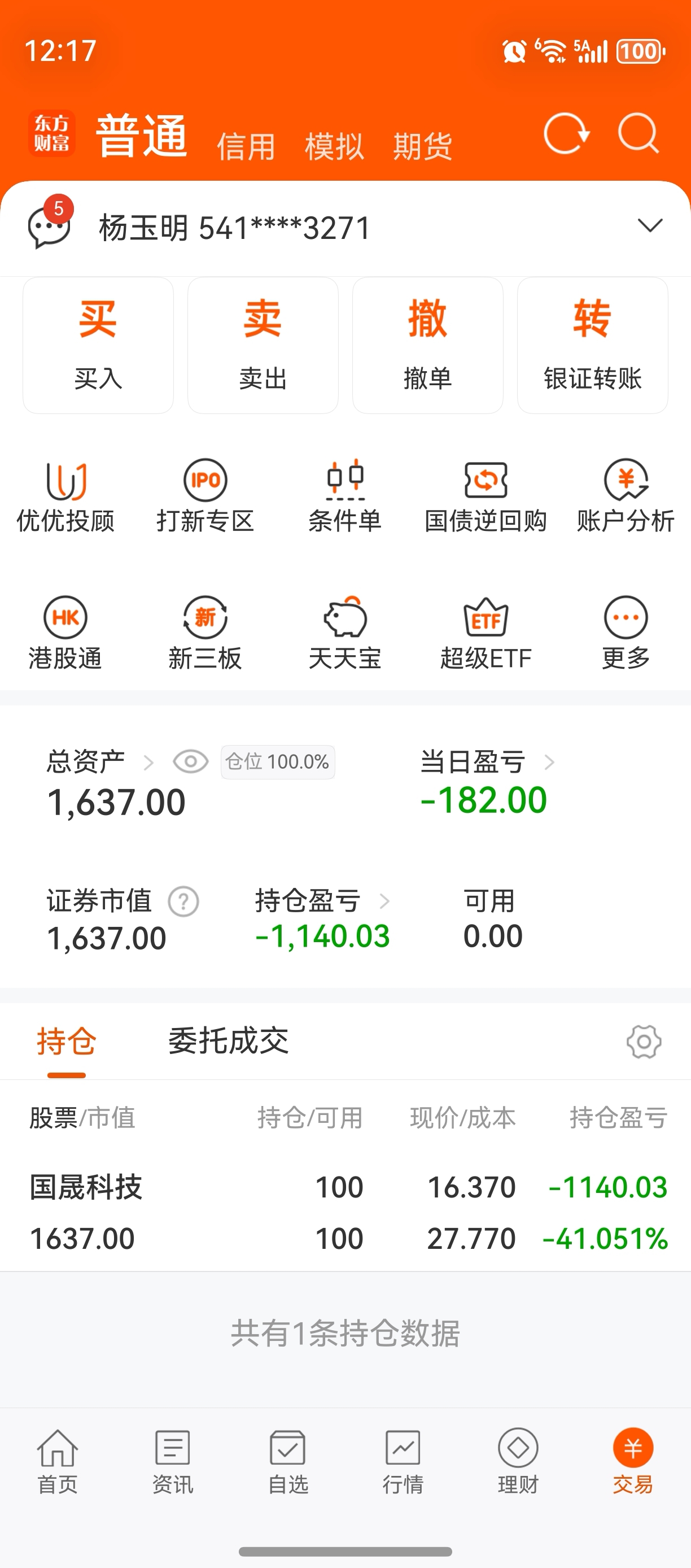 买了一手就亏了1140元这A股以后不能玩了,资金全部取出来了,等这一手开板卖掉,