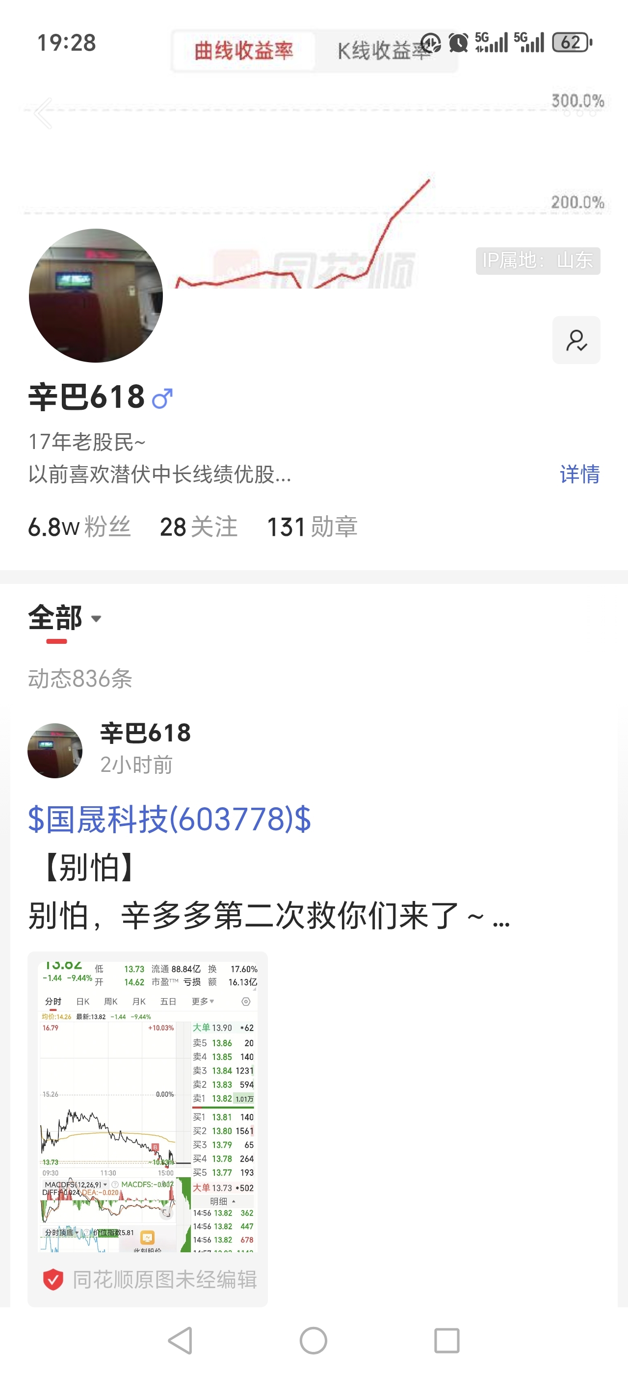 $国晟科技(SH603778)$ 辛巴618今天尾盘来了,他买的股基本上第二天都会大涨,明天一早不买进,年前没机会在14以下这么低的位置进了