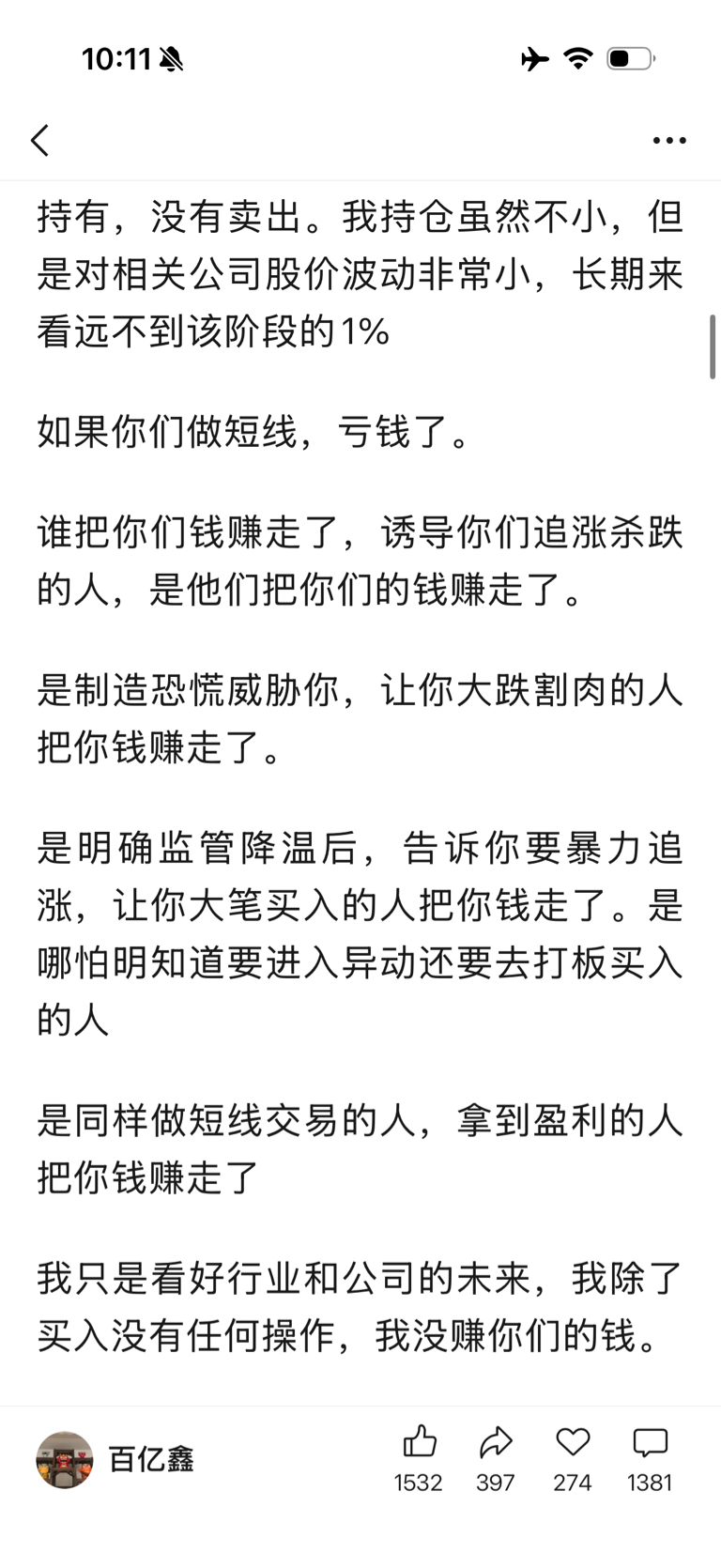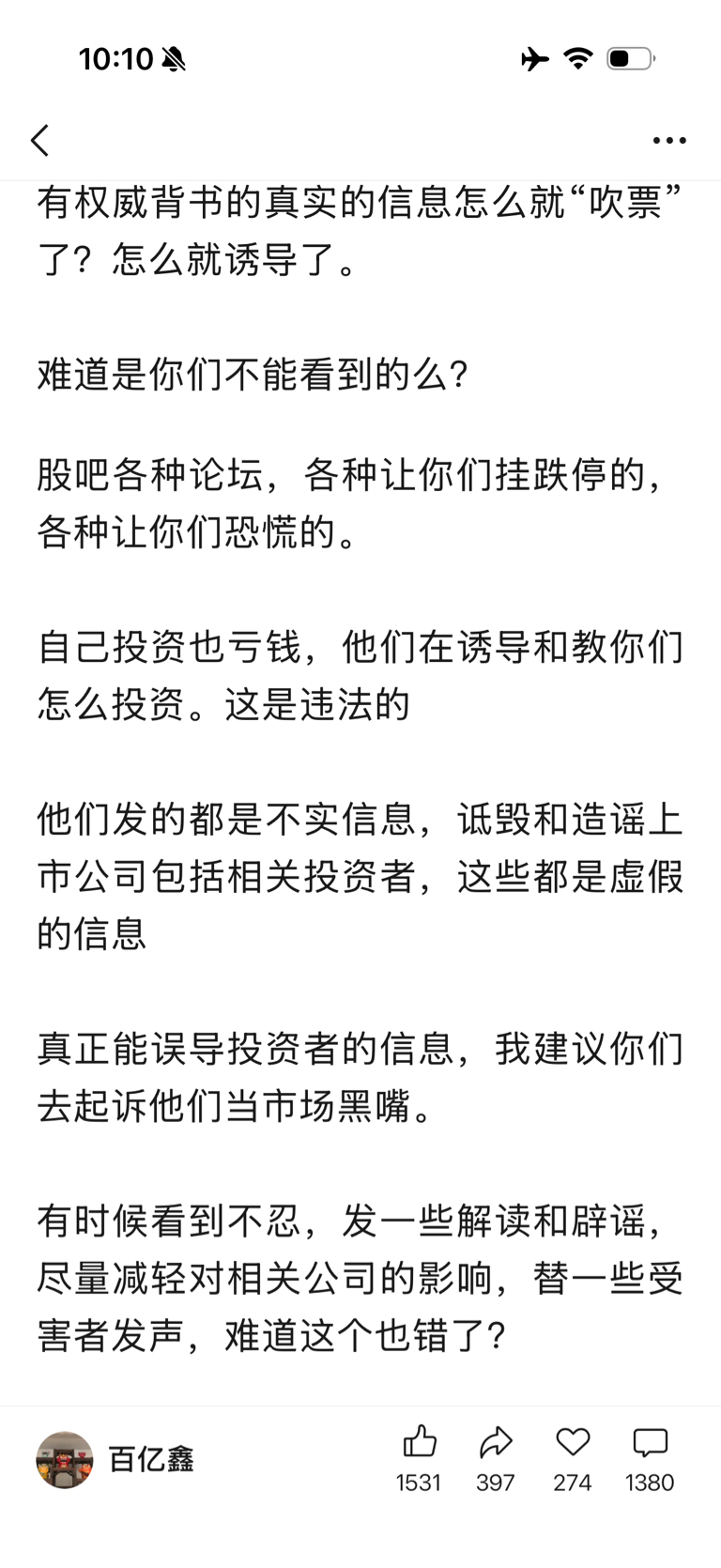郑重声明:用户在财富号/股吧/博客等社区发表的所有信息(包括但不限于文字、视频、音频、数据及图表)仅代表个人观点,与本网站立场无关,不对您构成任何投资建议,据此操作风险自担。请勿相信代客理财、免费荐股和炒股培训等宣传内容,远离非法证券活动。请勿添加发言用户的手机号码、公众号、微博、微信及QQ等信息,谨防上当受骗!