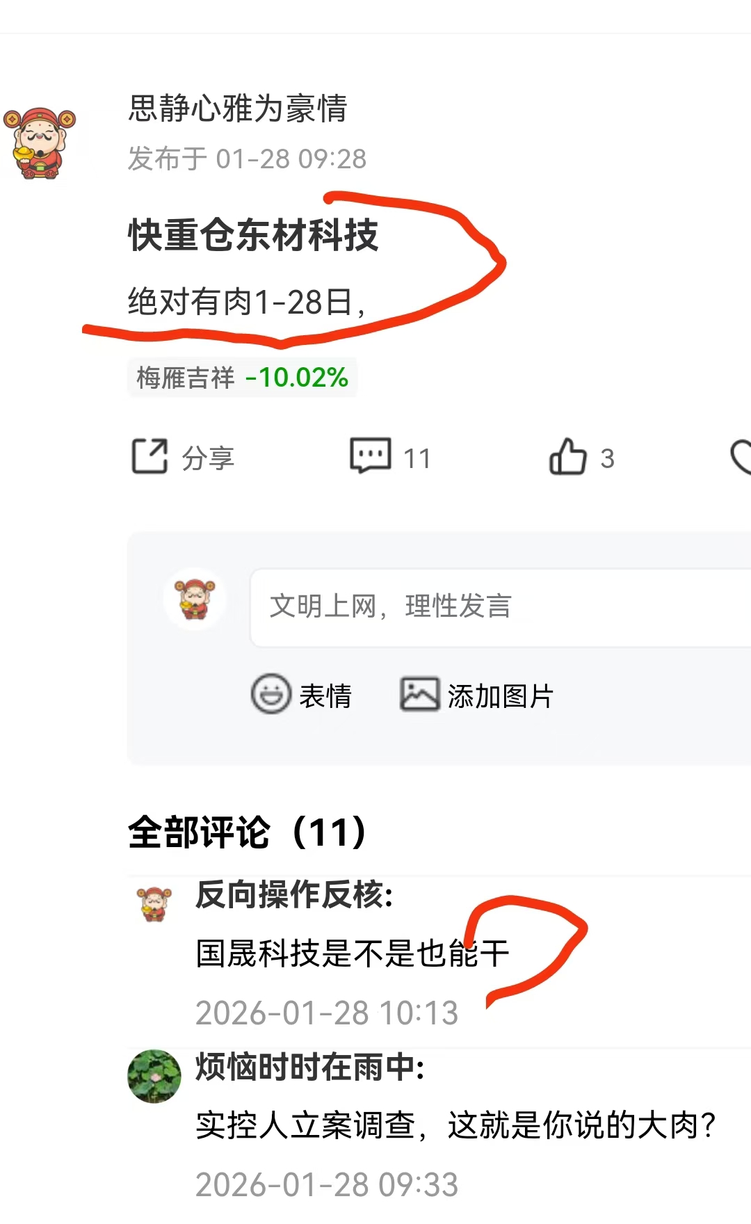 后来国晟科技,在回复中也提醒过不要碰。发过贴不要碰,这种贴我删了。外面每天发贴跟的人,那个没有吃涨停的?