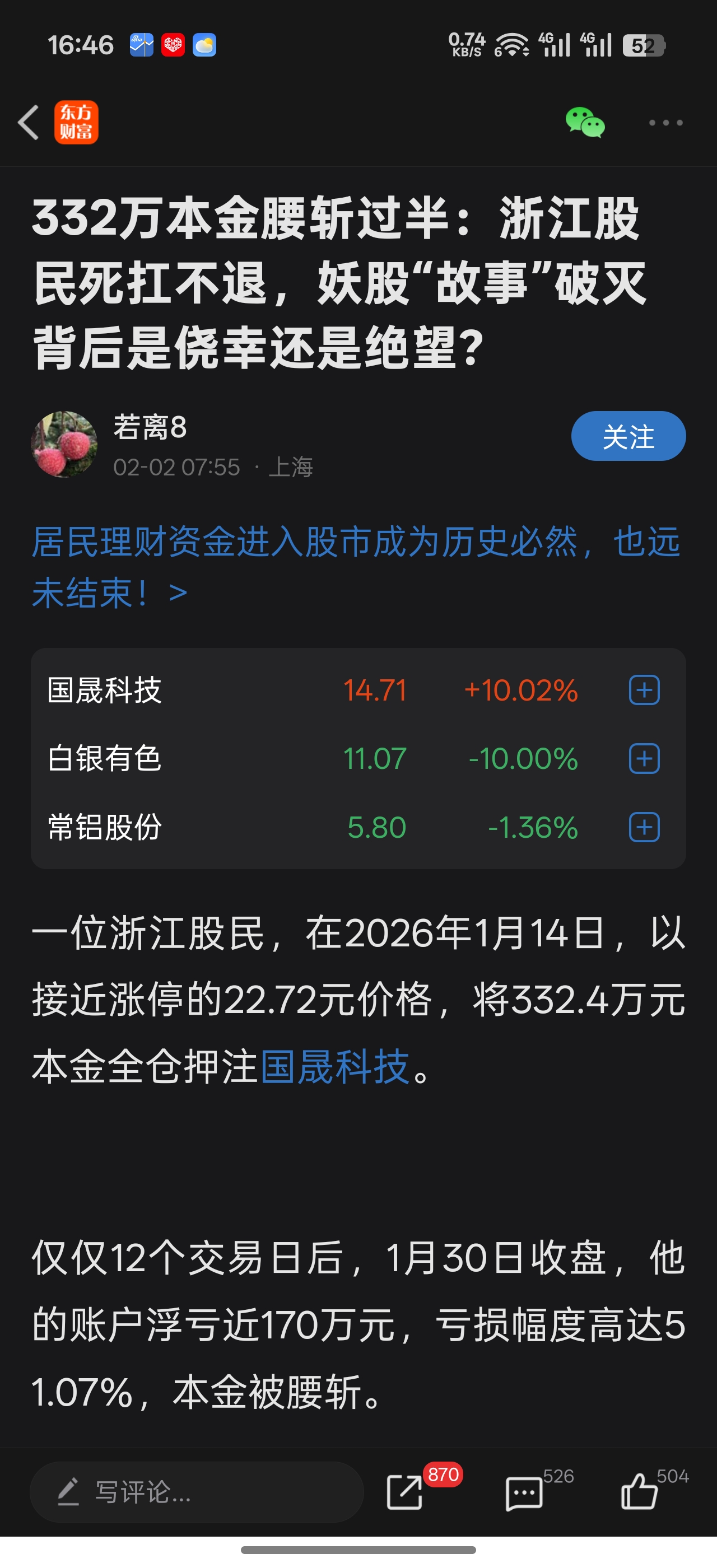 这不是我昨天看的文章,浙江某人200多万挂山顶的那支股么?他扬言死扛到底,没想到