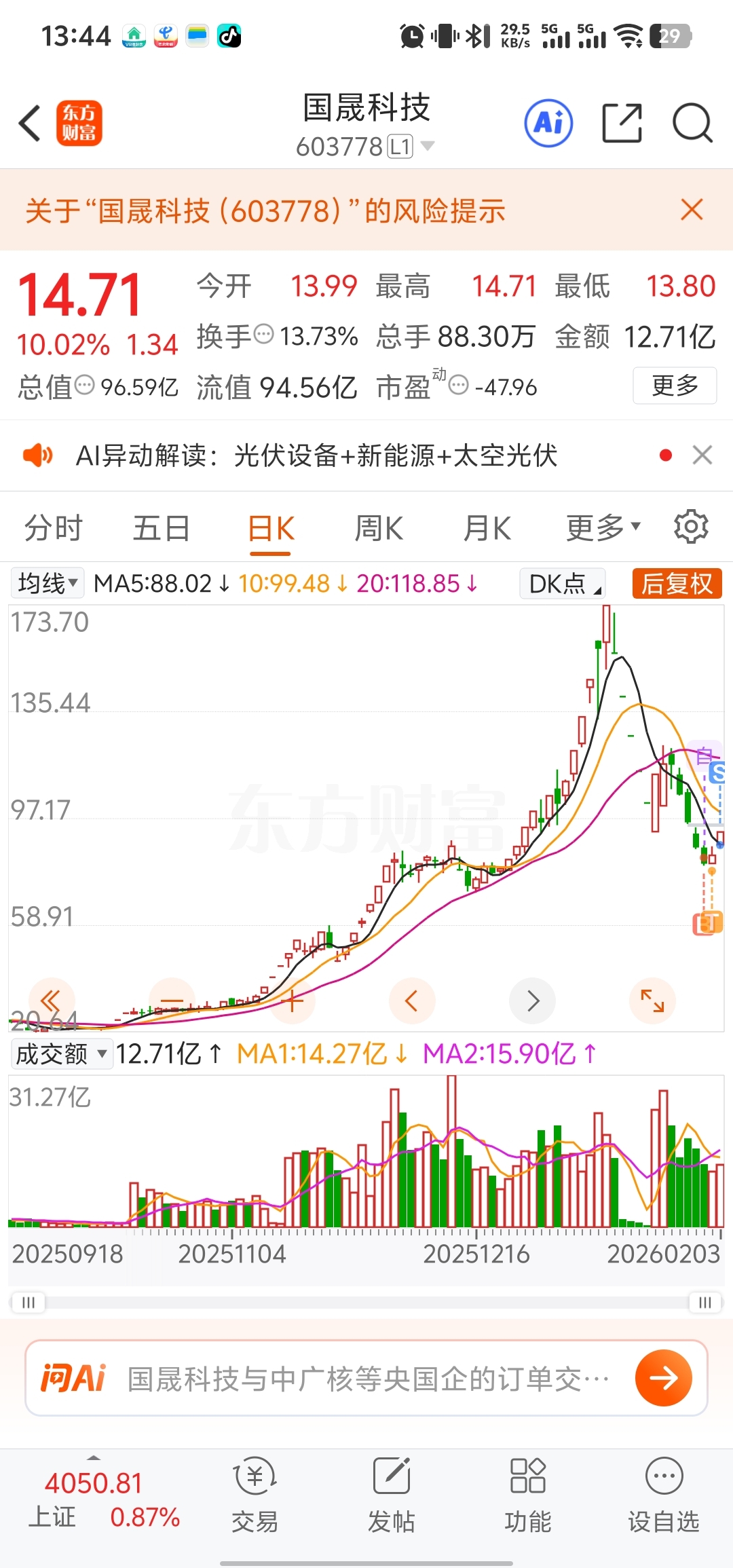 温馨提示: 1.根据《证券法》规定,禁止编造、传播虚假信息或者误导性信息,扰乱证券市场;2.用户在本社区发表的所有资料、言论等仅代表个人观点,与本网站立场无关,不对您构成任何投资建议。用户应基于自己的独立判断,自行决定证券投资并承担相应风险。《东方财富社区管理规定》