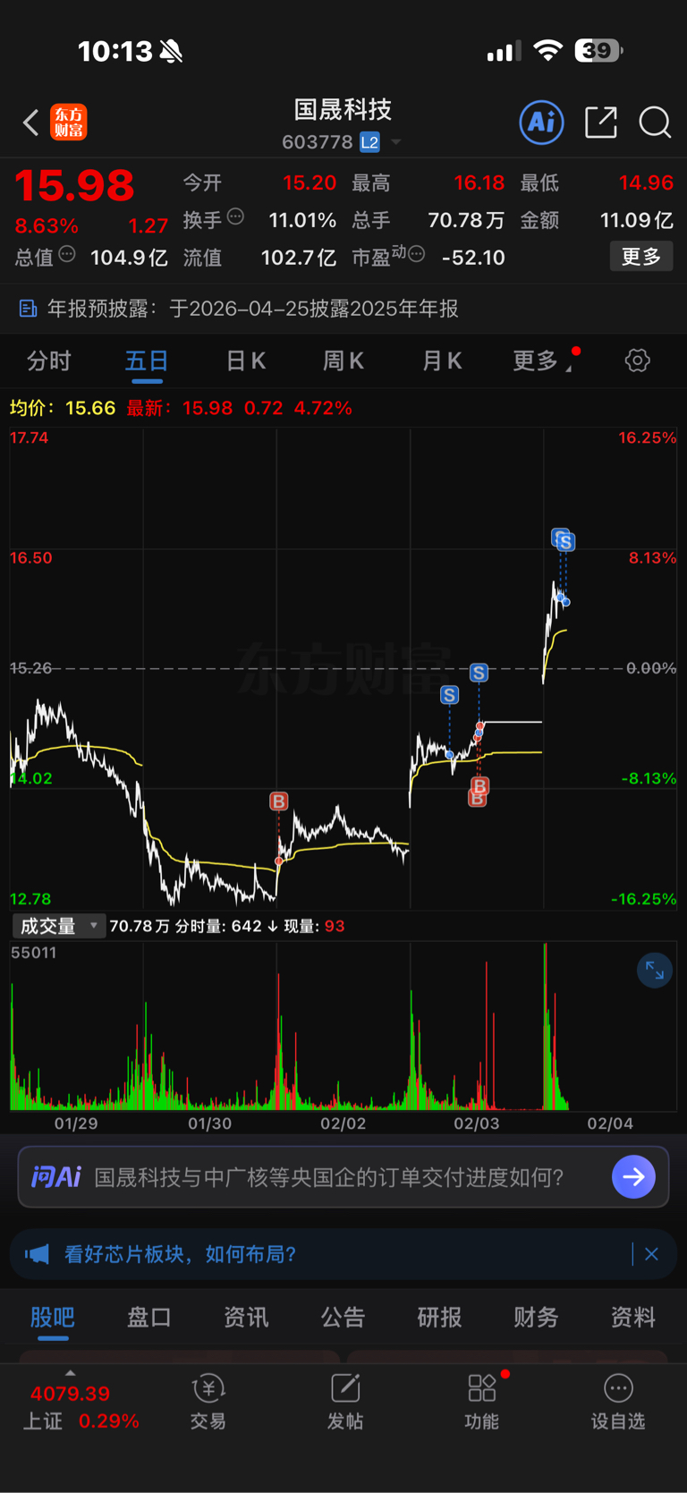 $国晟科技(SH603778)$ 留了一个底仓,先走一步,有点害怕监管,希望在里面的兄弟可以压一压盘。