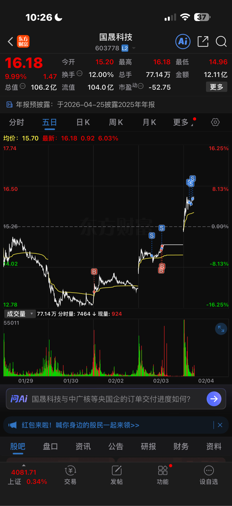 $国晟科技(SH603778)$ 你们这样买,异动续杯怎么办